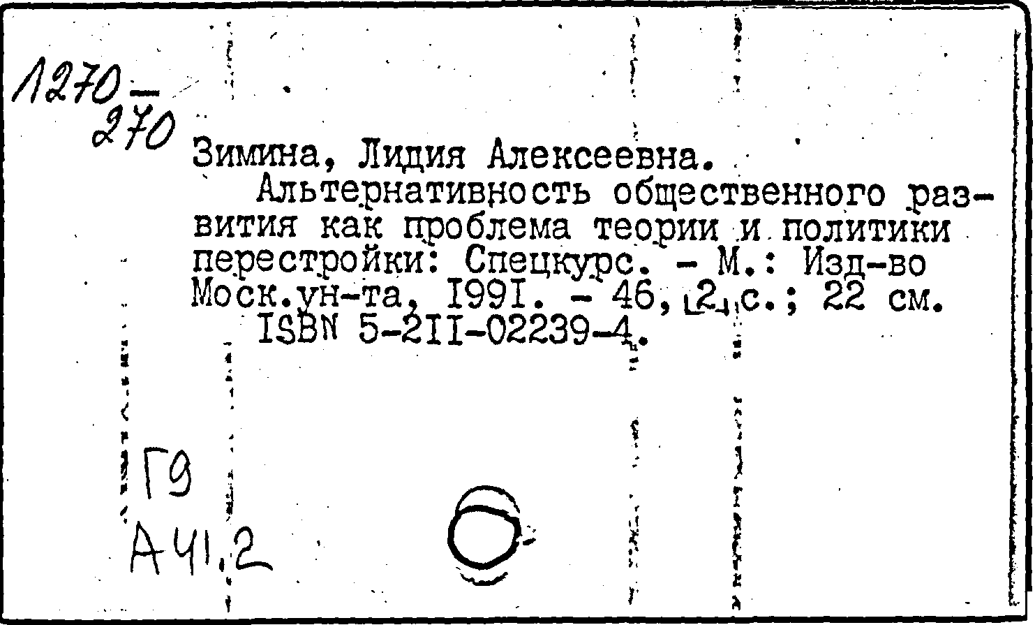 Книга: Альтернативность общественного развития как проблема теории и политики перестройки
