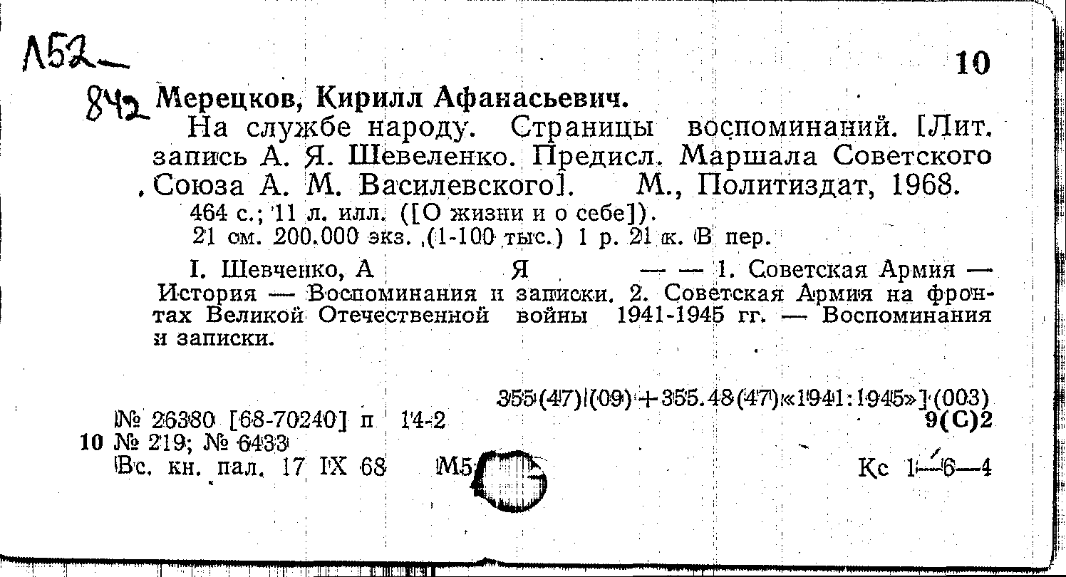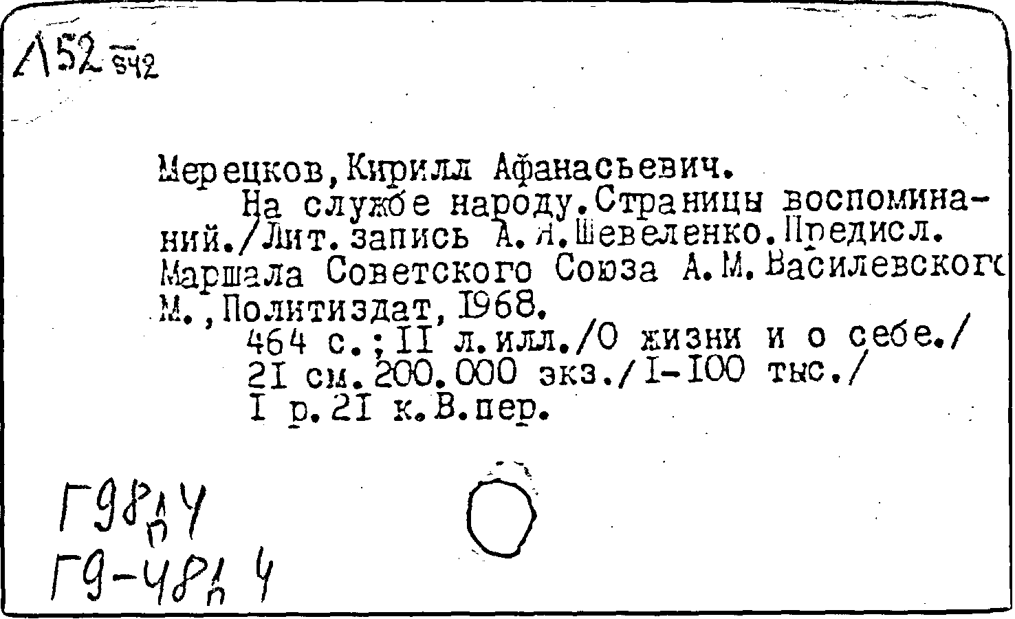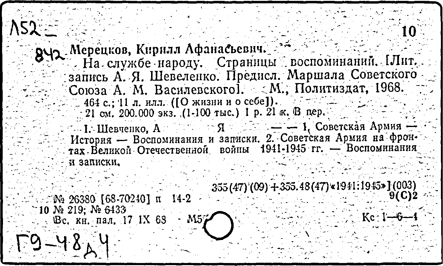 СССР, 1941-1945 гг. Великая Отечественная война \ Героизм советских воинов. Участники войны \ Personalia \ Мерецков, Кирилл Афанасьевич (9)