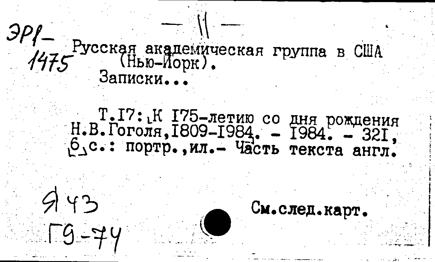 Книга: Записки Русской академической группы в США. Т. 17: К 175-летию со дня рождения Н. В. Гоголя, 1809-1984
