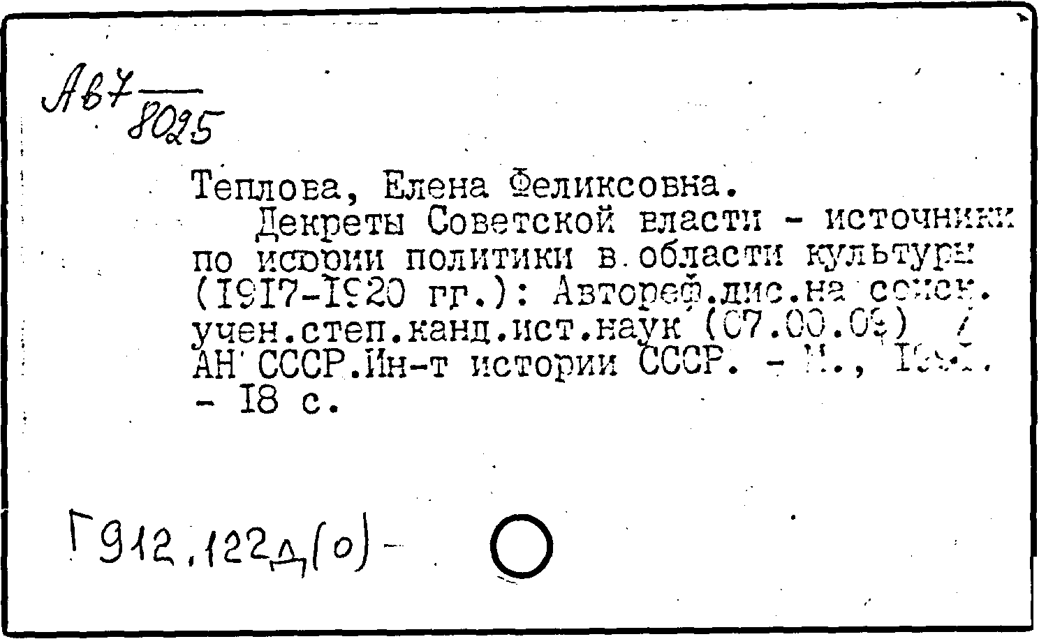 Фонд: КХ, Шифр: Ав 7 /8025, Инв.№: 0352393