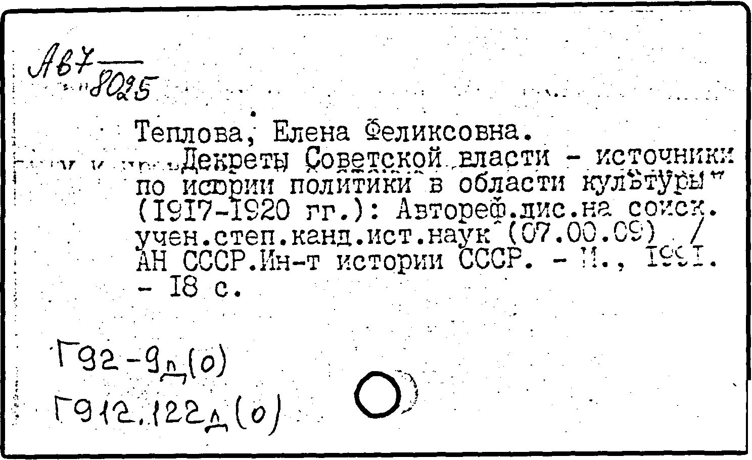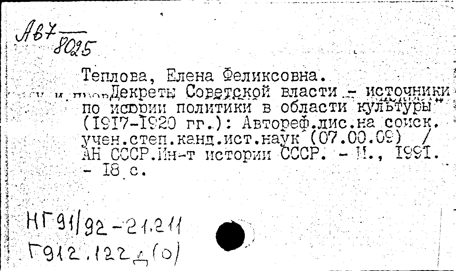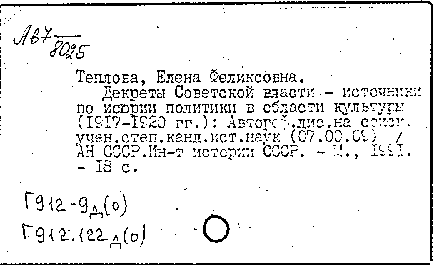 Декреты Советской власти - источники по истории политики в области культуры (1917-1920 гг.)