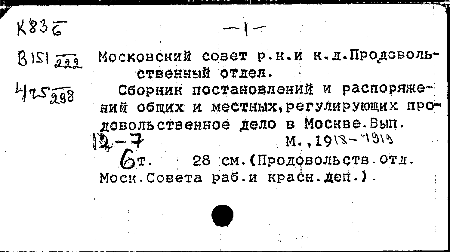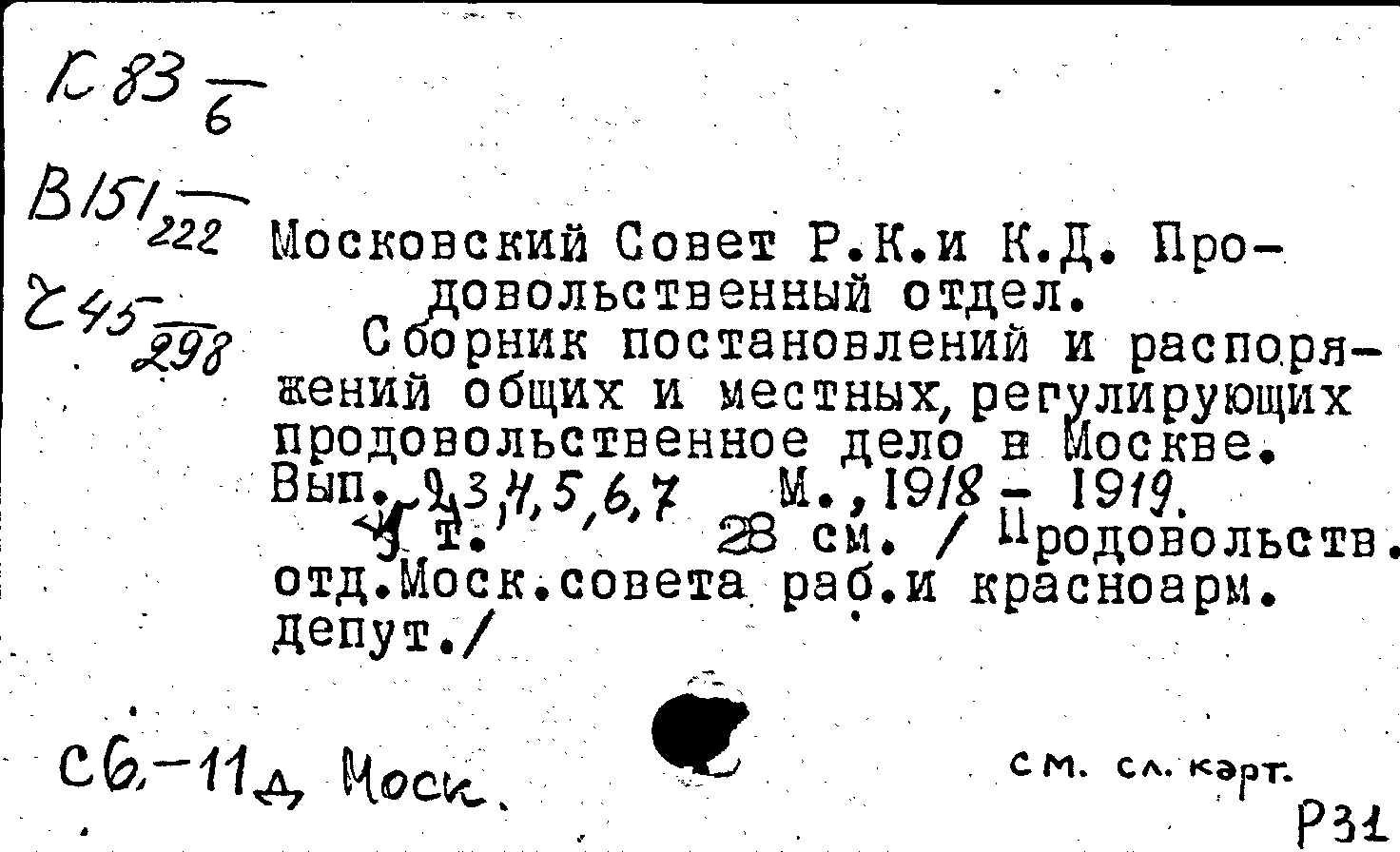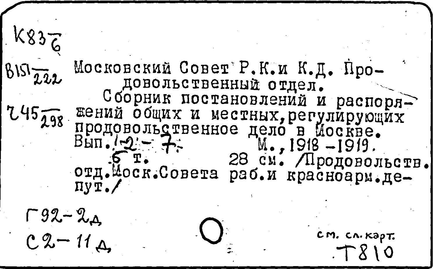 Московский Совет Р. К. и К. Д. Продовольственный отдел