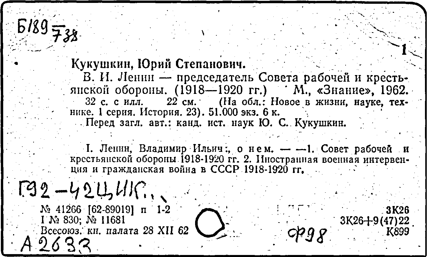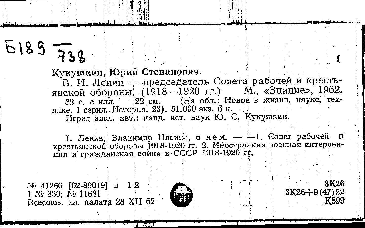 Фонд: КХ, Шифр: Б 189 /738, Инв.№: 0360796