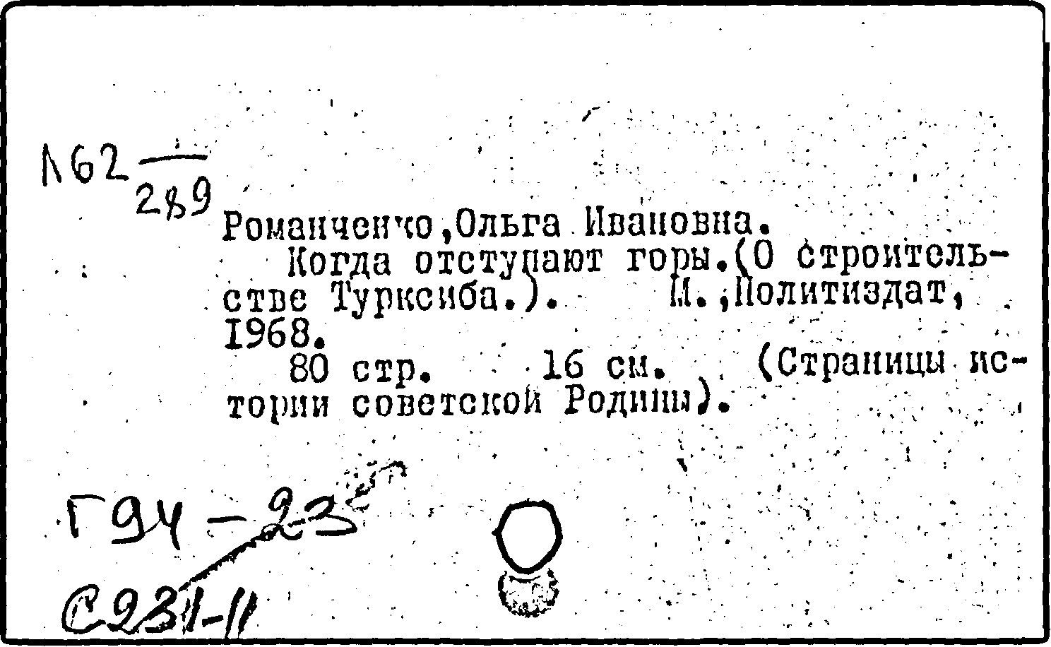 Фонд: КХ, Шифр: Л 62 /289, Инв.№: 0367520