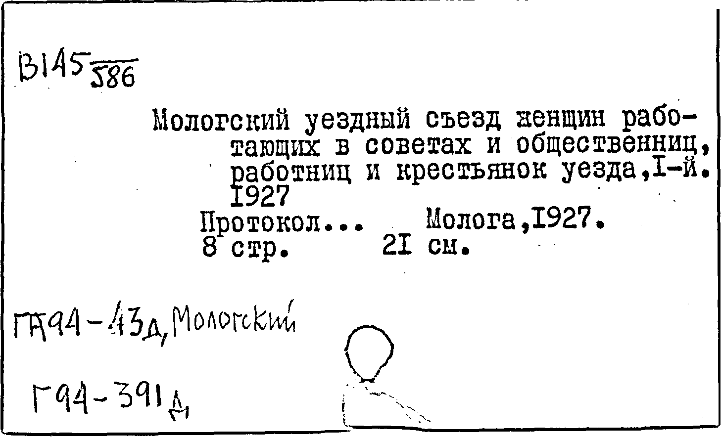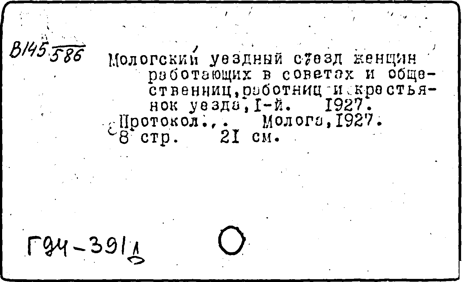 Мологский уездный съезд женщин работающих в советах и общественниц, работниц и крестьянок уезда (1; 1927)
