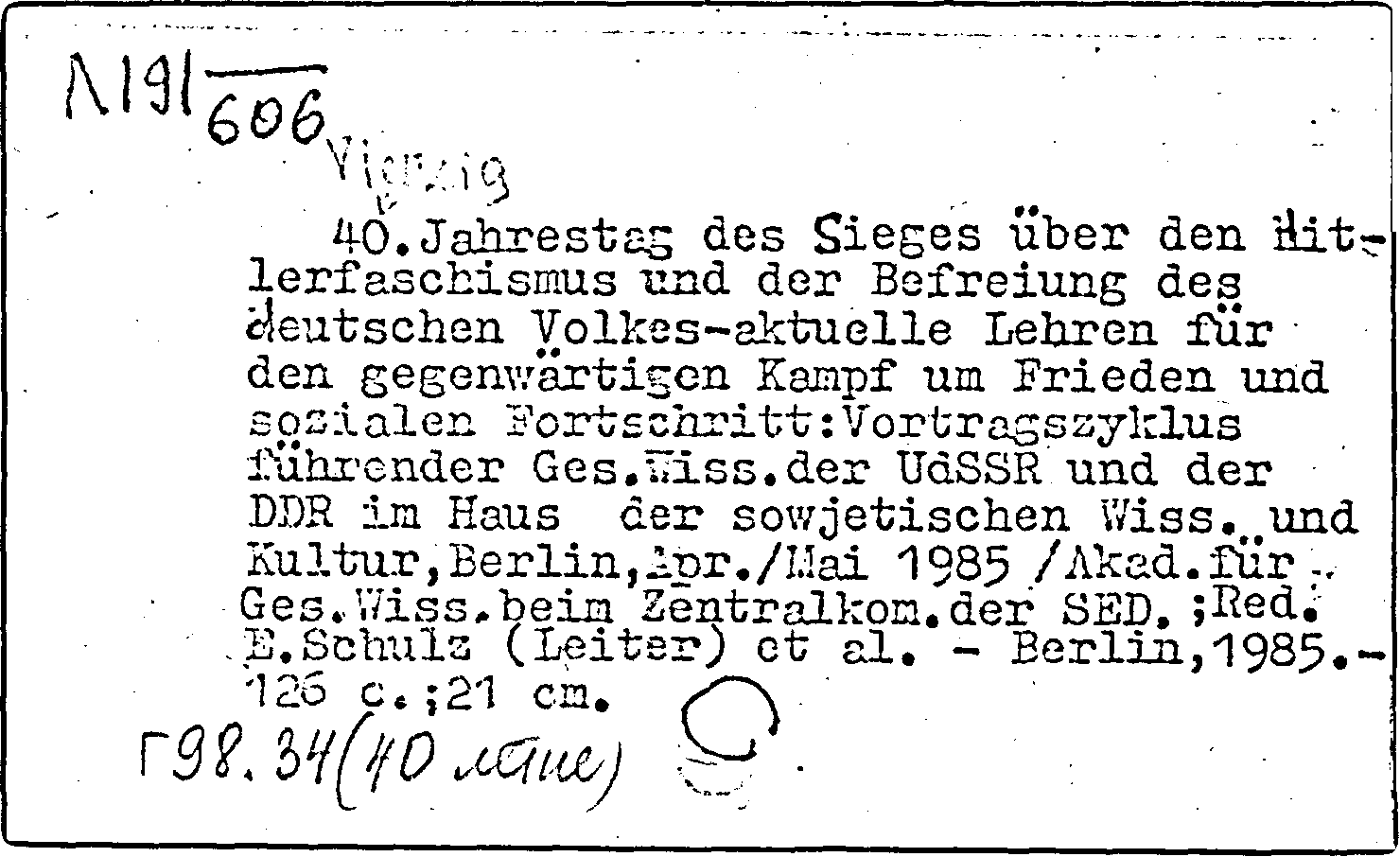 40. Jahrestag des Sieges uber den Hitlerfaschismus und der Befreiung des deutschen Volkes-aktuelle Lehren fur den gegenwartigen Kampf um Frieden und sozialen Fortschritt