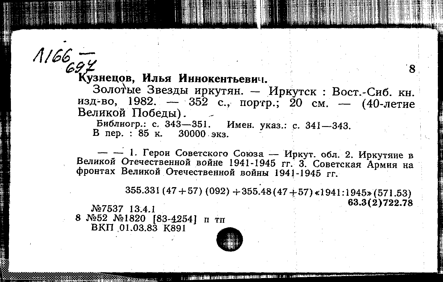 Фонд: КХ, Шифр: Л 166 /697, Инв.№: 0382831