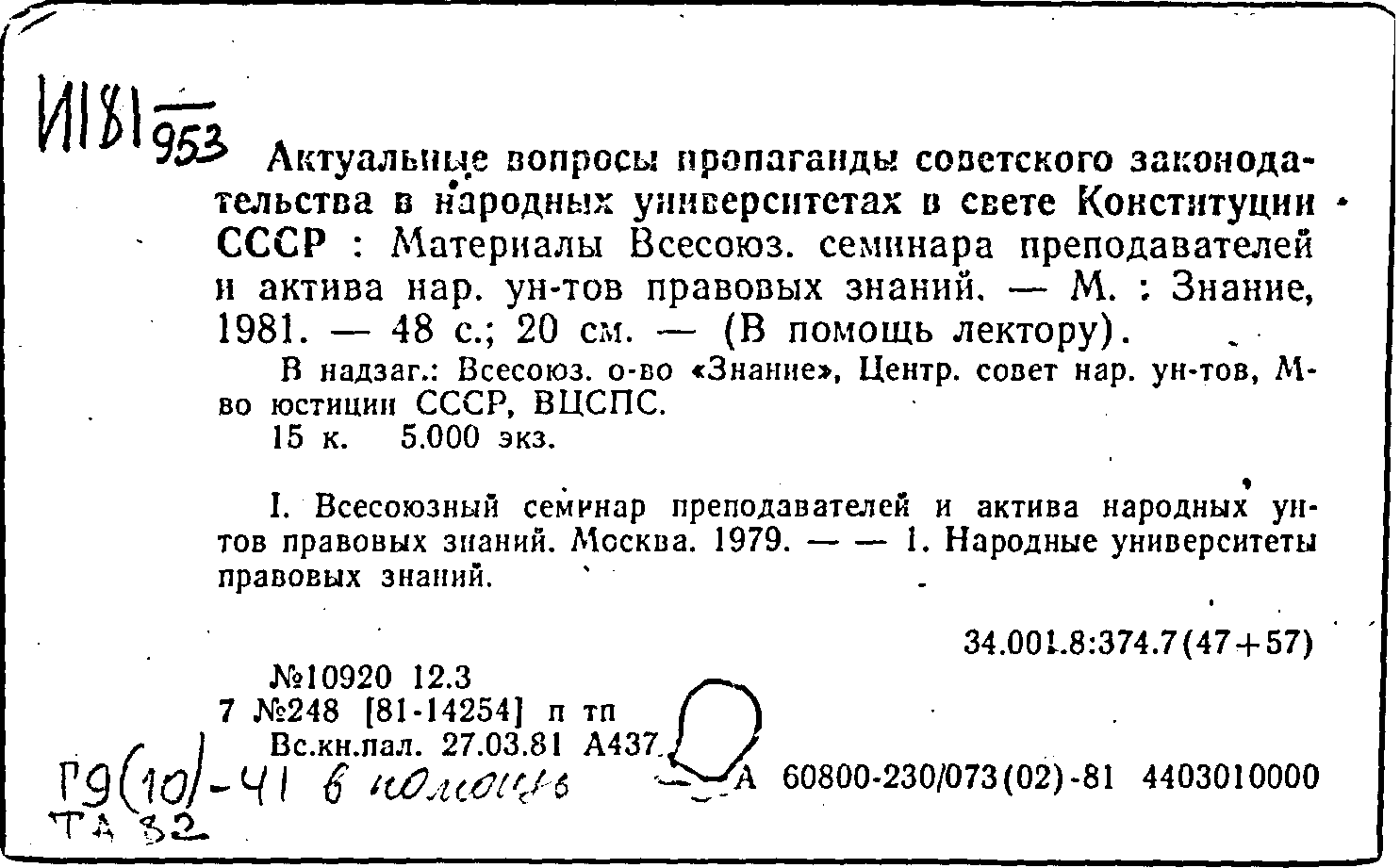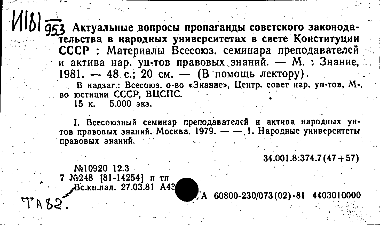 Актуальные вопросы пропаганды советского законодательства в народных университетах в свете Конституции СССР