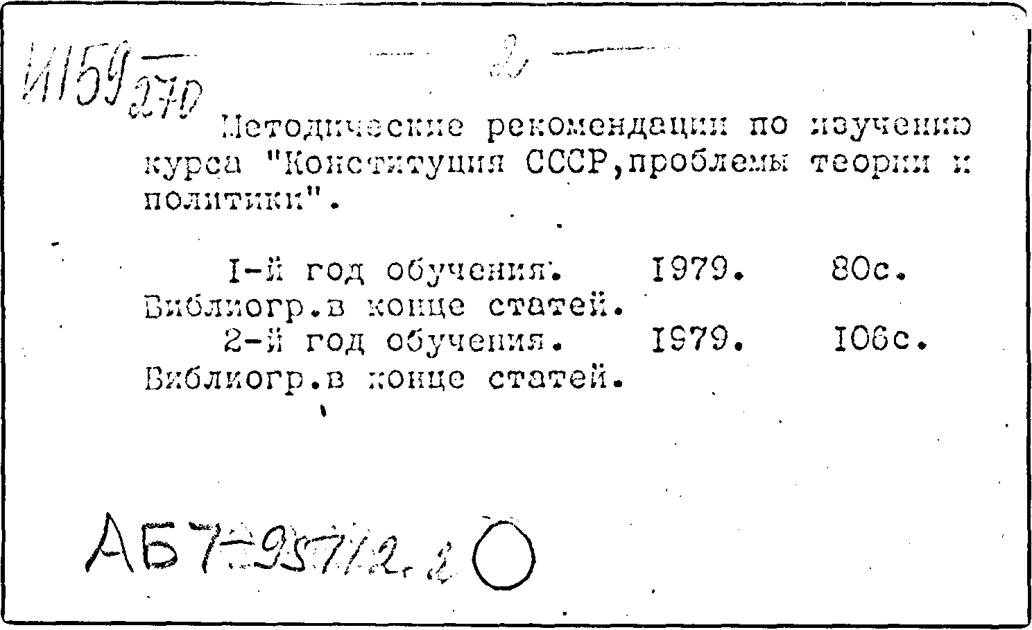 Методические рекомендации по изучению курса "Конституция СССР, проблемы теории и политики". 1-й год обучения