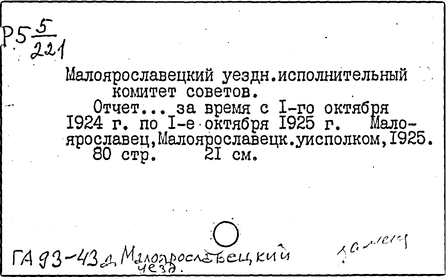 Российская Федерация, 1922-1925 гг. \ Политический строй \ Местные органы власти и управления \ Отд. местности и регионы \ Малоярославецкий уезд (3)