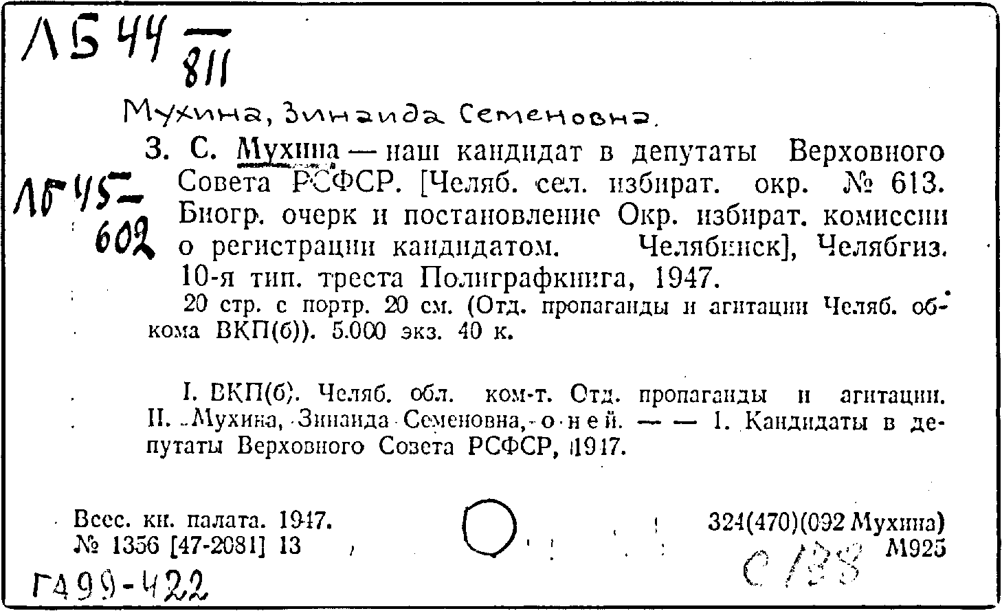 Книга: З. С. Мухина - наш кандидат в депутаты Верховного Совета РСФСР