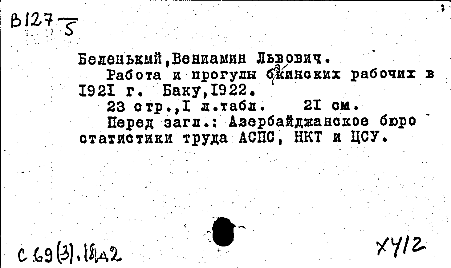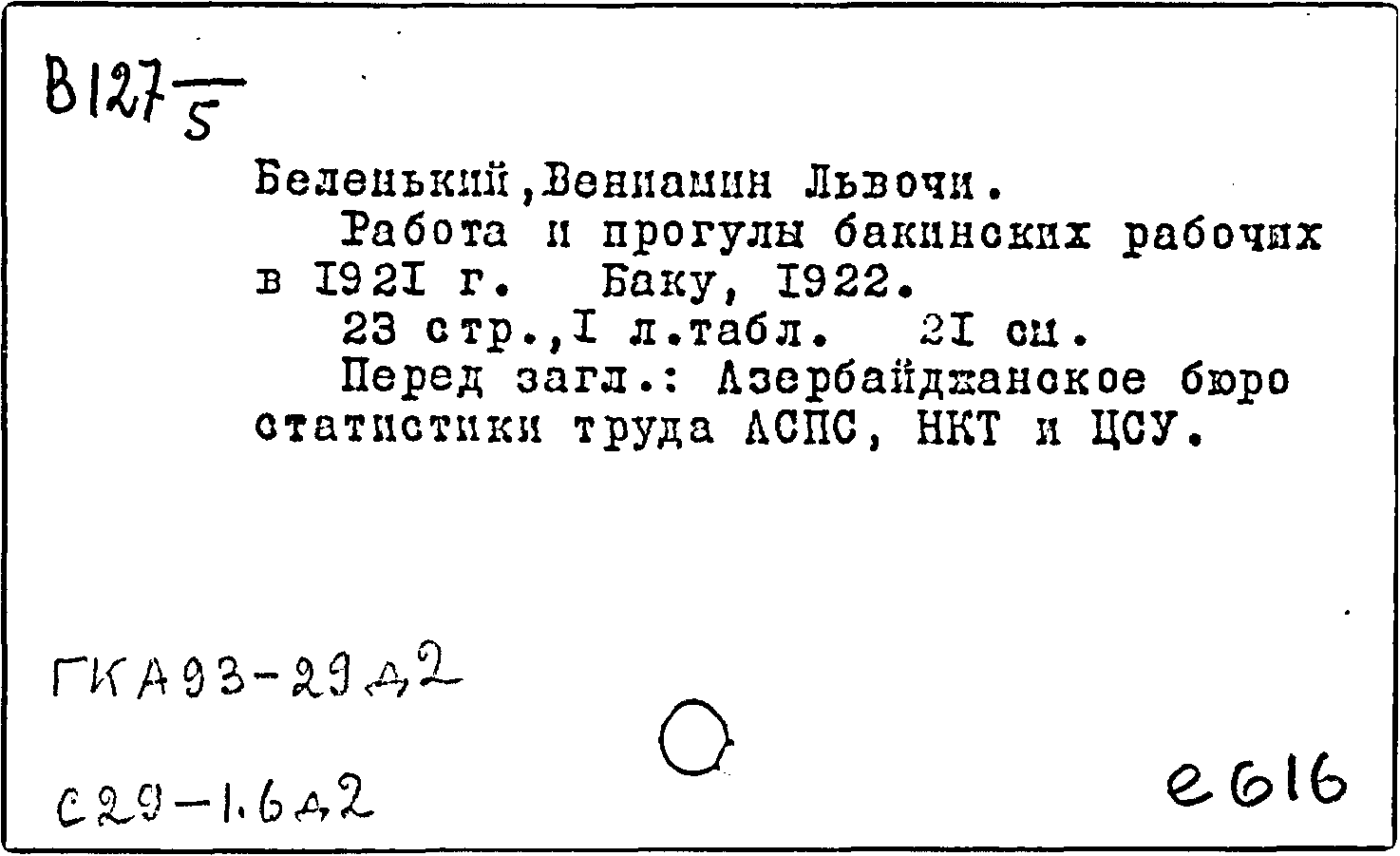 Книга: Работа и прогулы бакинских рабочих в 1921 г.