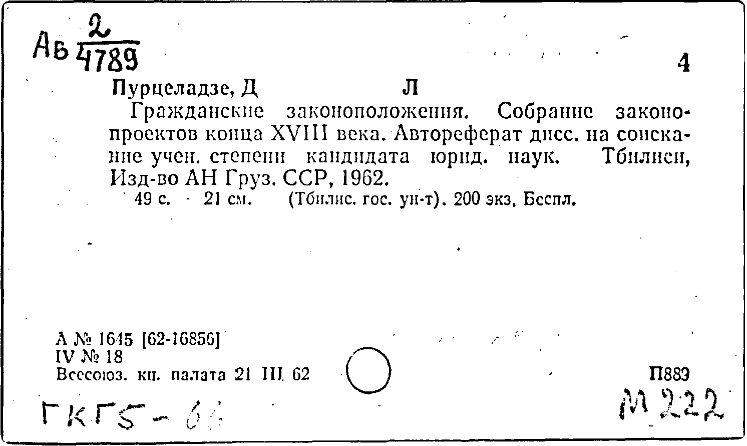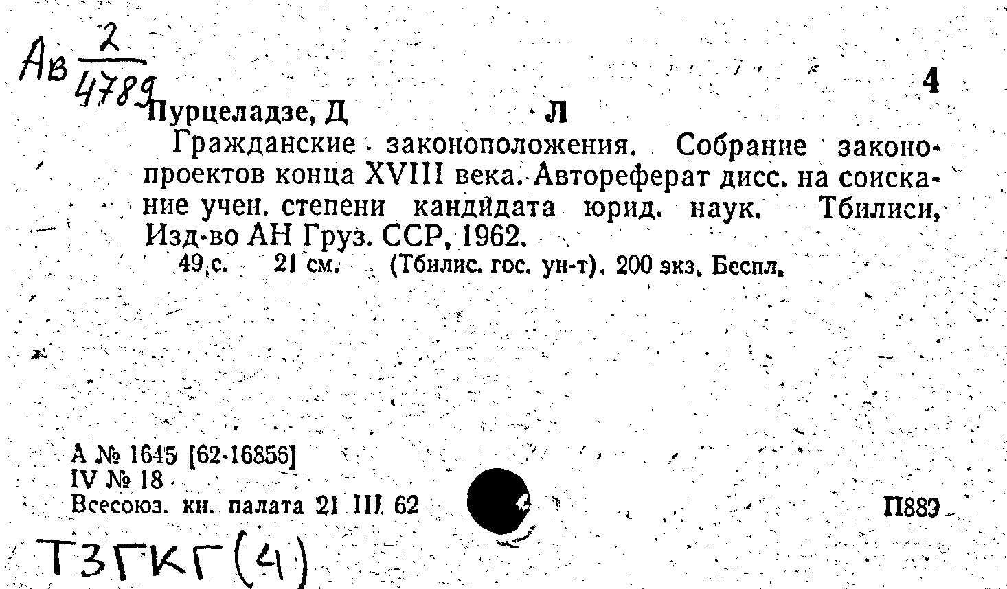 Фонд: КХ, Шифр: Ав 2 /4789, Инв.№: 0448442