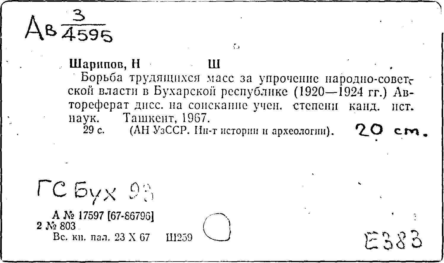 Борьба трудящихся масс за упрочение народно-советской власти в Бухарской республике (1920-1924 гг.)