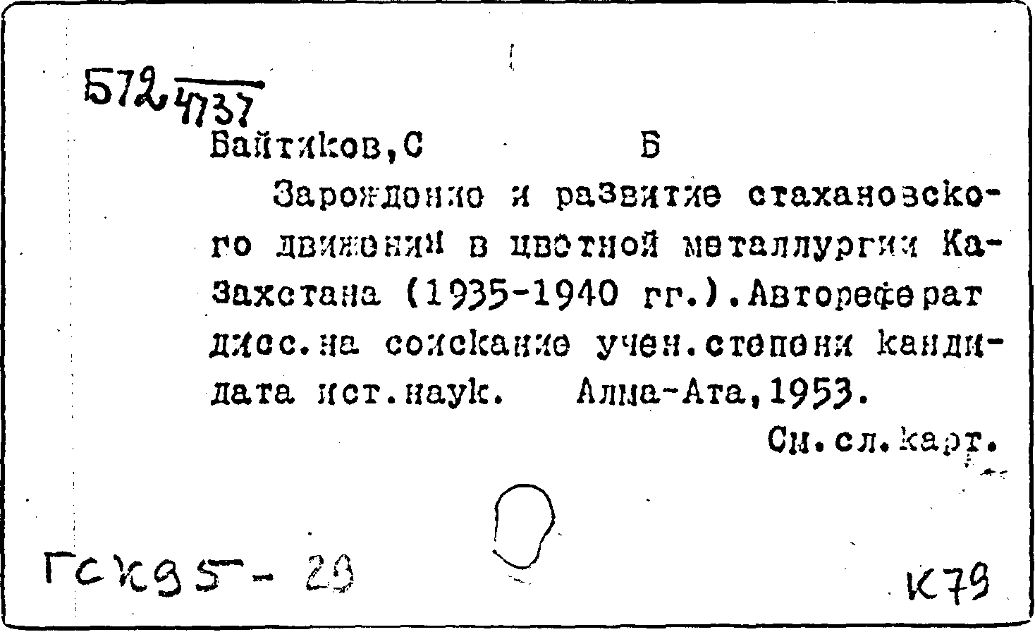 Зарождение и развитие стахановского движения в цветной металлургии Казахстана (1935-1940 гг.)