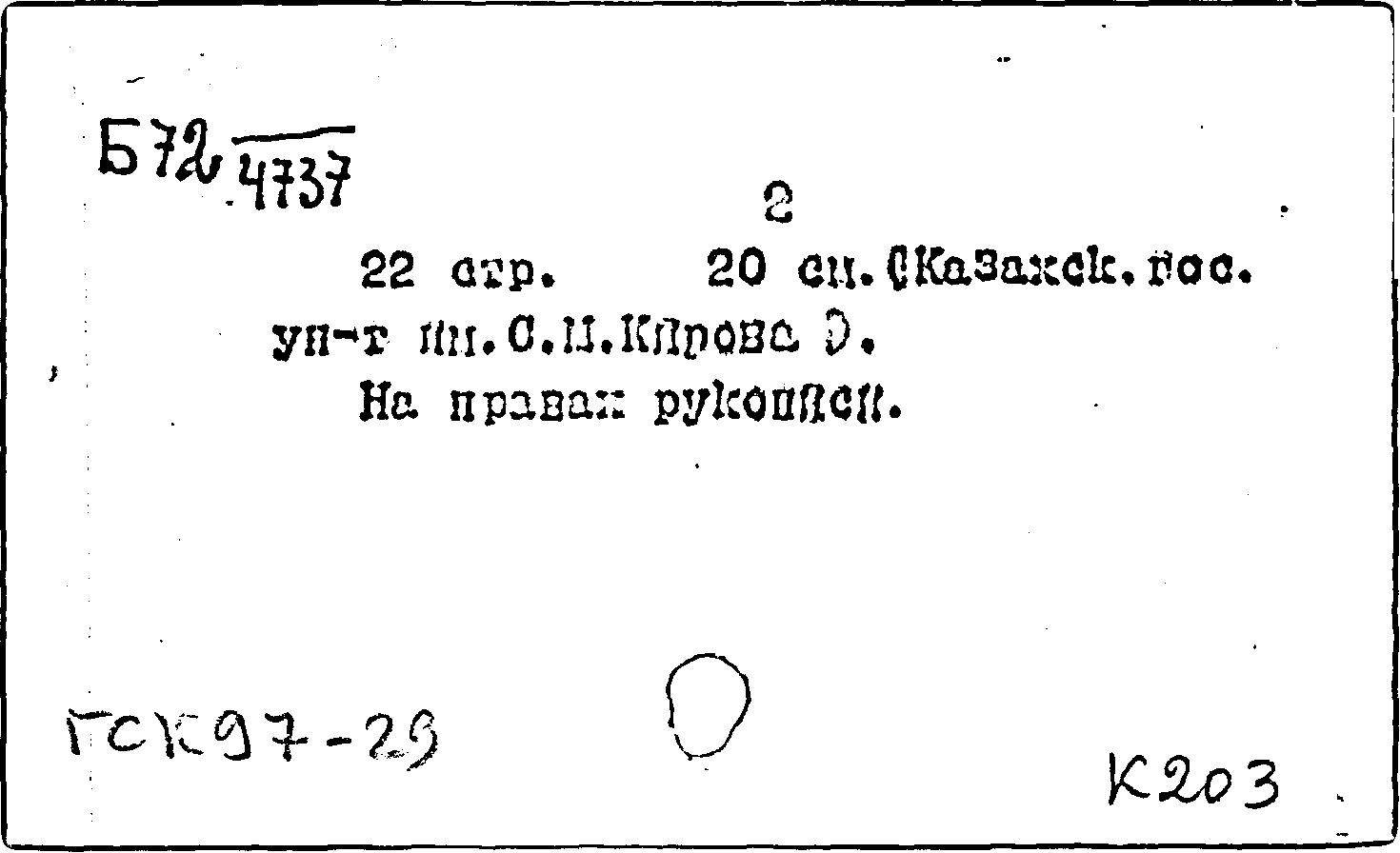 Фонд: КХ, Шифр: Б 72 /4737, Инв.№: 0465030