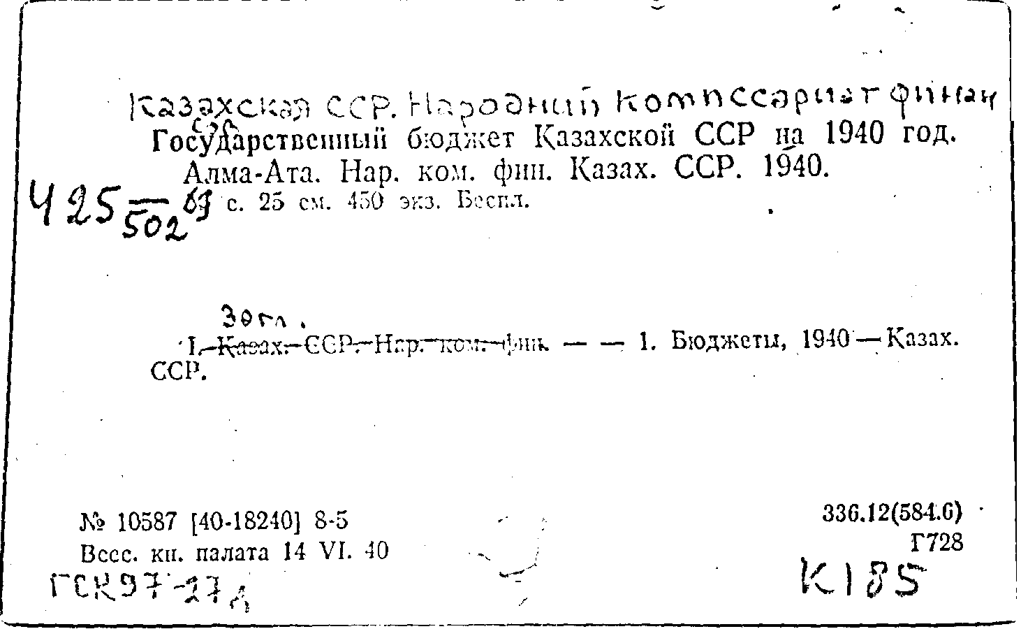 Книга: Государственный бюджет Казахской ССР на 1940 год