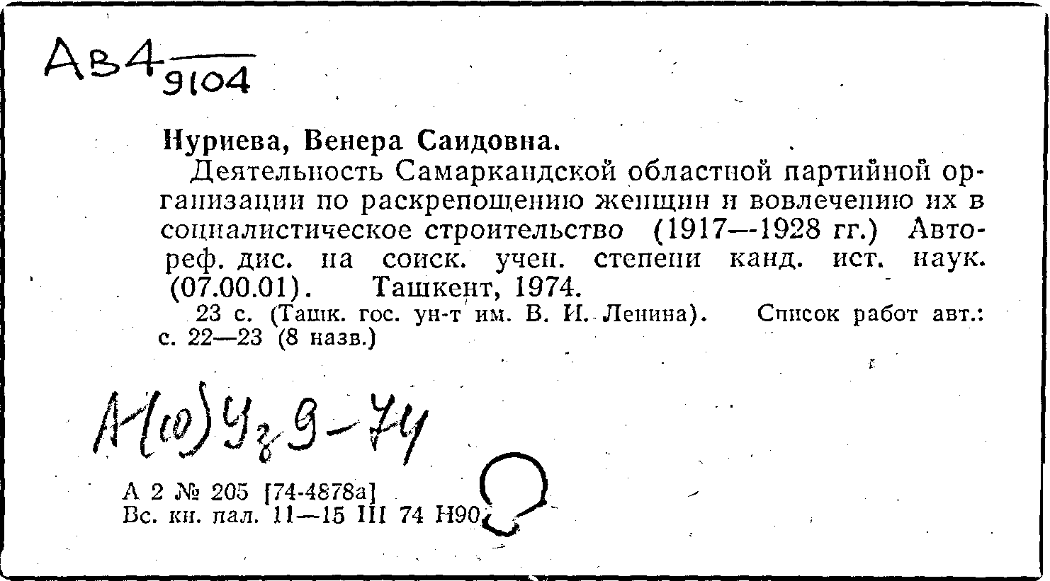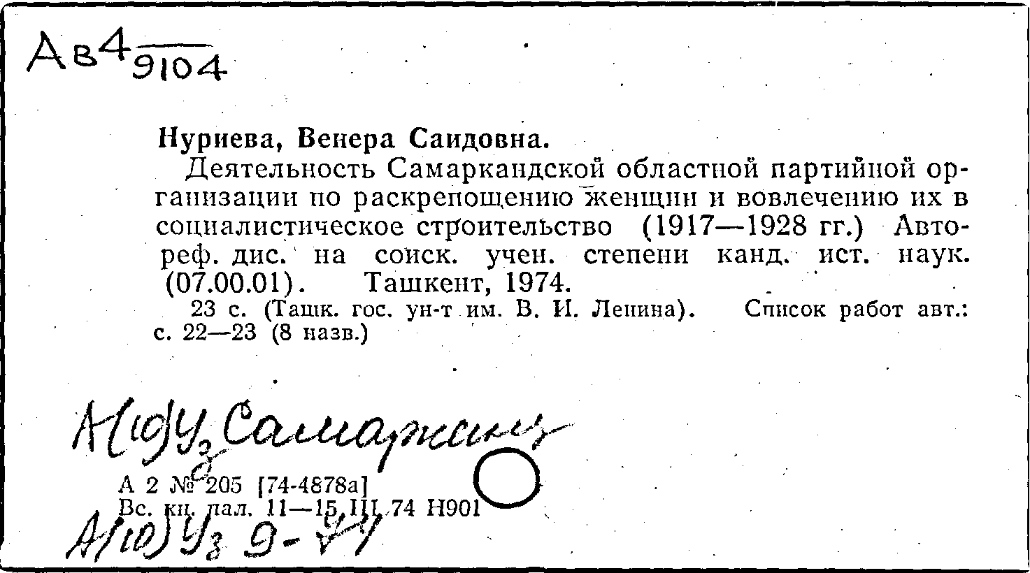 Деятельность Самаркандской областной партийной организации по раскрепощению женщин и вовлечению их в социалистическое строительство (1917-1928 гг.)
