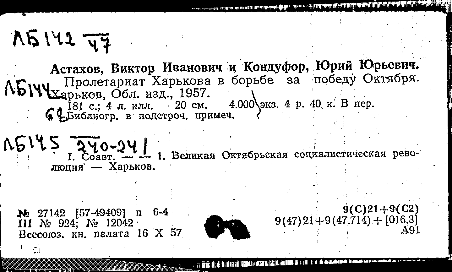 Фонд: КХ, Шифр: ЛБ 142 /47, Инв.№: 0482670