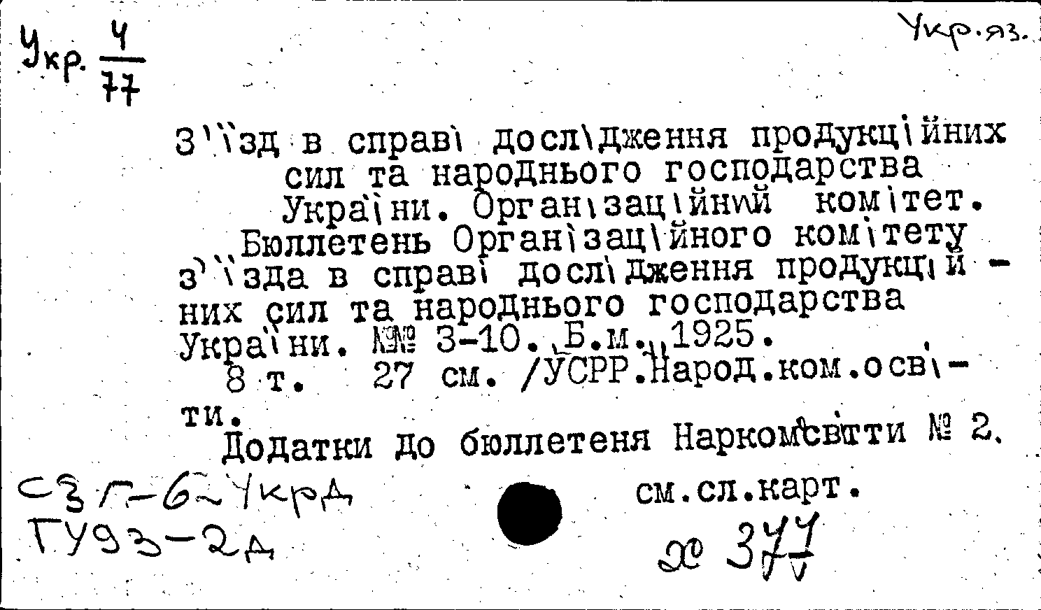 Фонд: КХ, Шифр: Укр 4/77, Инв.№: 0846564