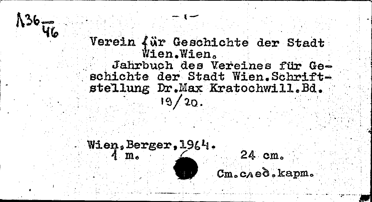 Книга: Jahrbuch des Vereines fur Geschichte der Stadt Wien. Bd. 19/20. (1963/64)