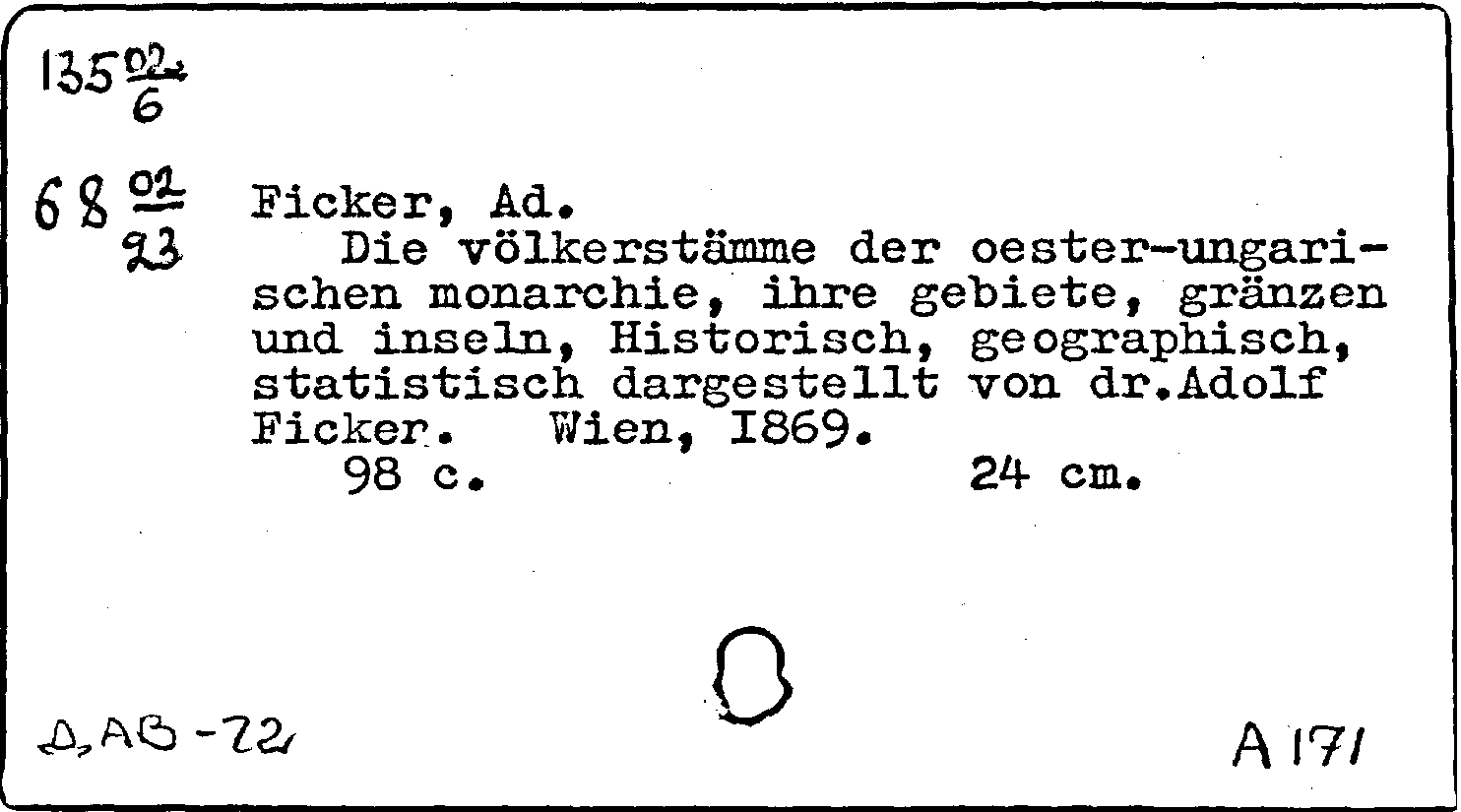 Die volkerstamme der oester-ungarischen monarchie, ihre gebiete, granzen und inseln, Historisch, geographisch, statistisch dargestellt von dr. Adolf Ficker