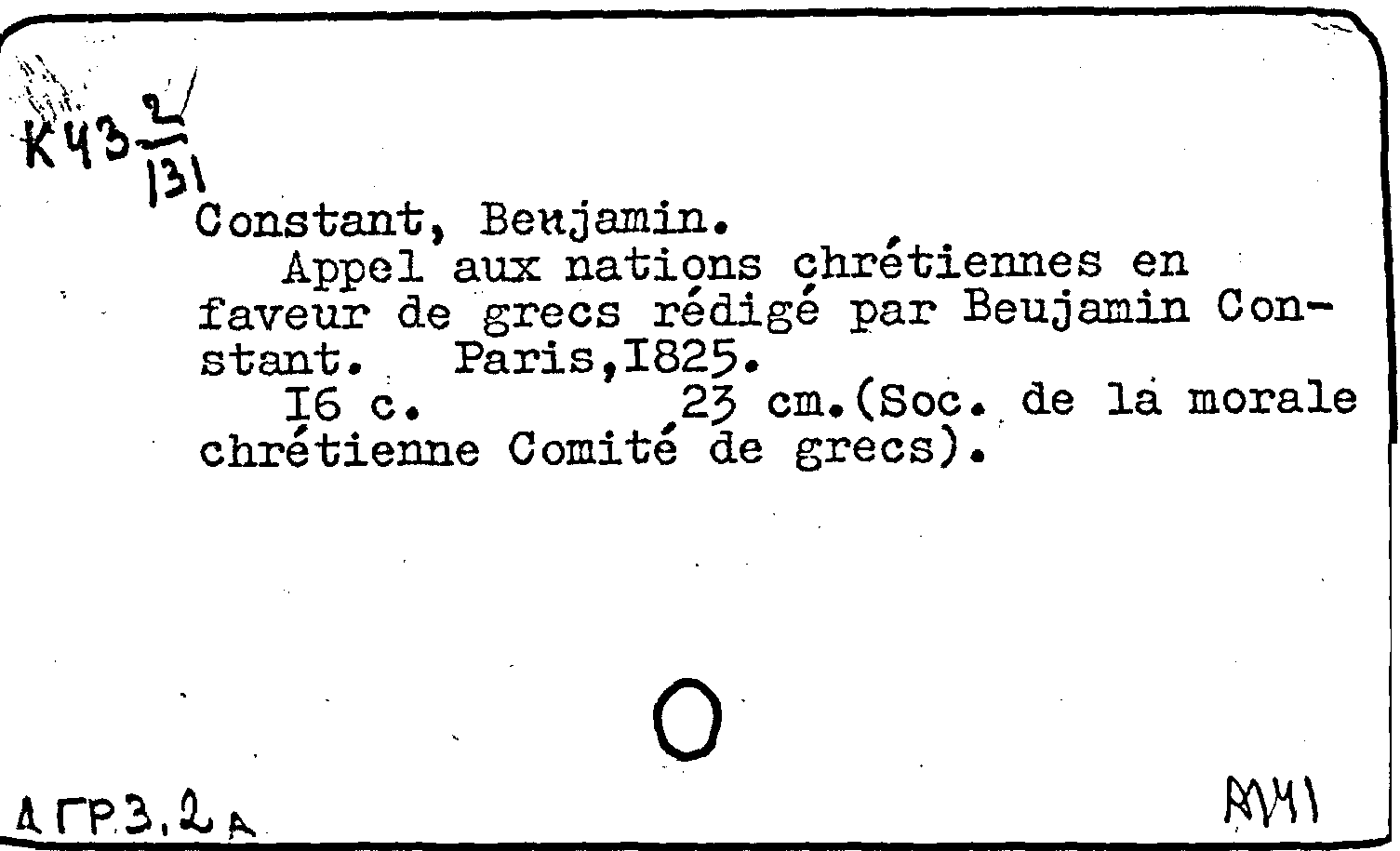 Appel aux nations chretiennes en faveur de grecs redige par Beujamin Constant