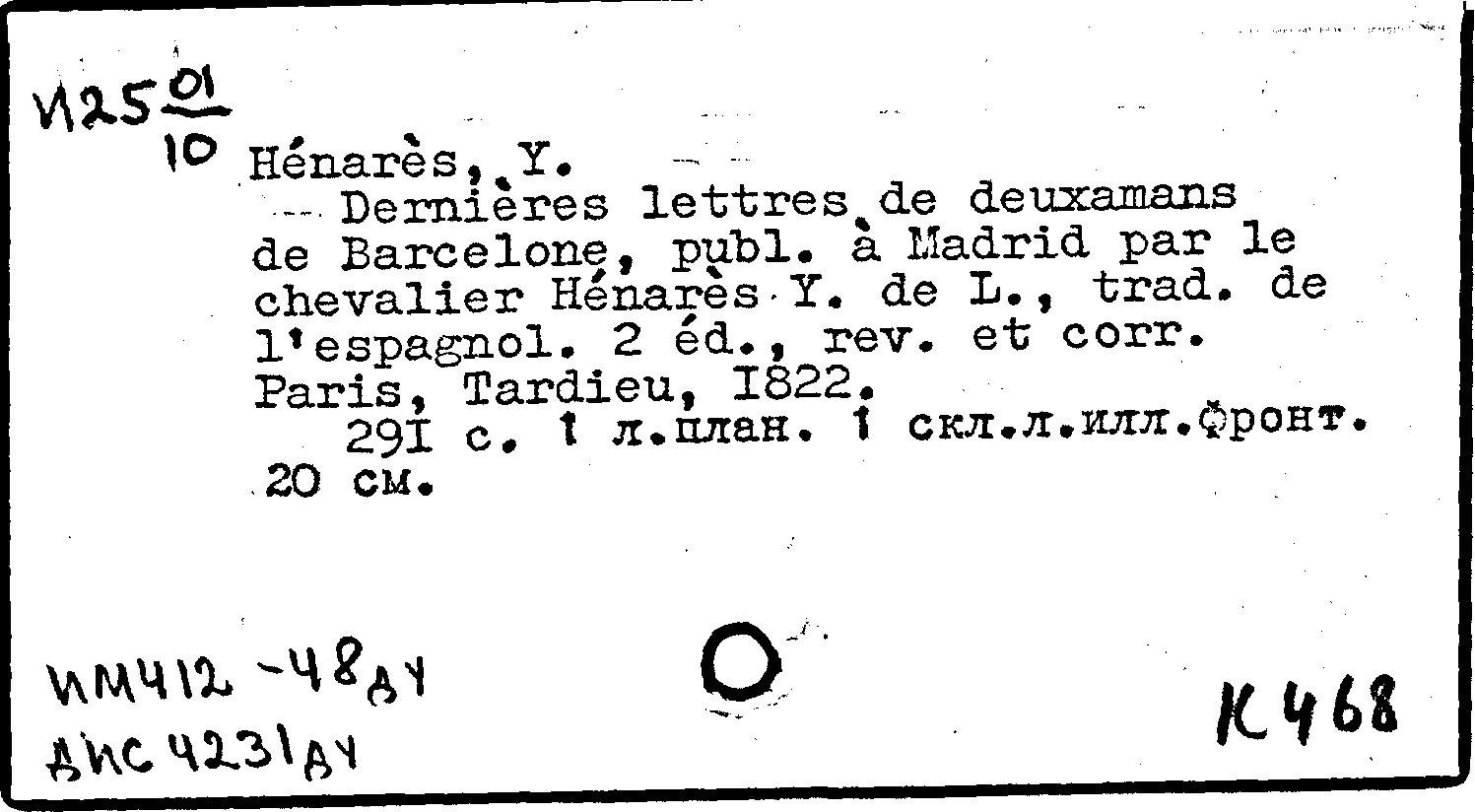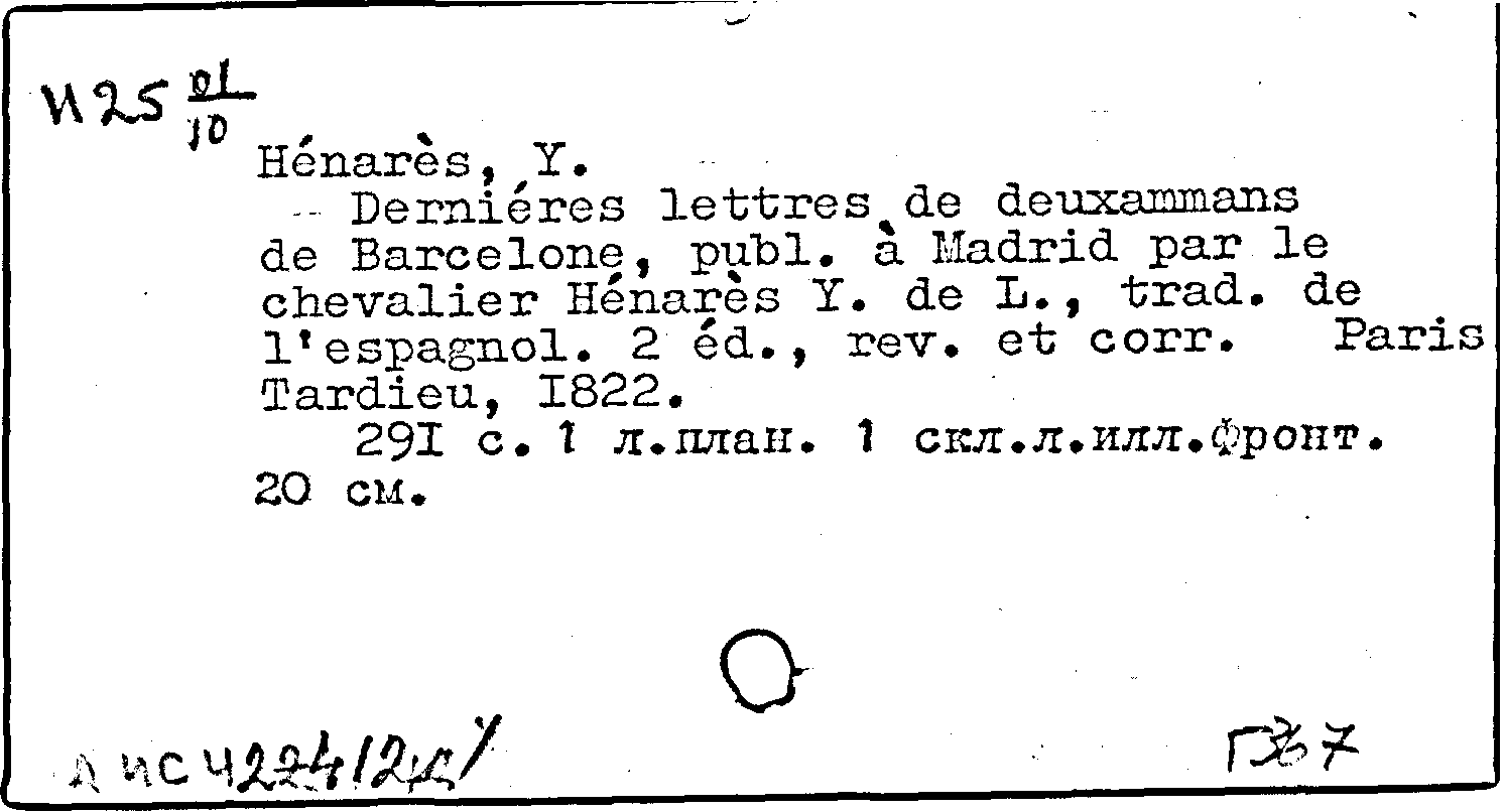 Dernieres lettres de deuxammans de Barcelone, publ. a Madrid par le chevalier Henares Y. de L., trad. de l'espagnol