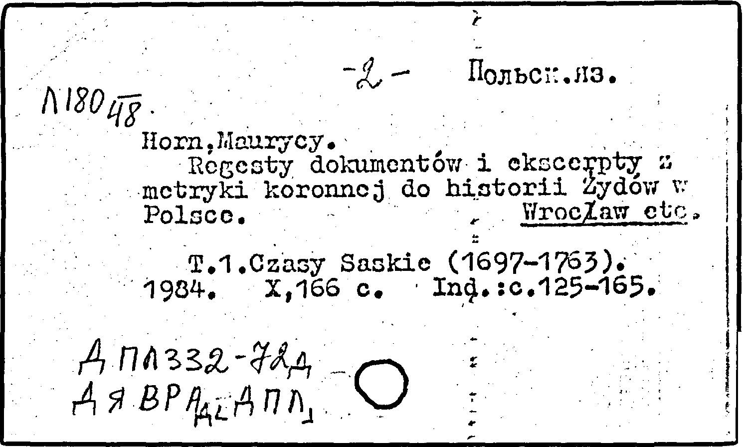 Книга: Regesty dokumentow i ekscerpty z metryki koronnej do historii Zydow w Polsce (1697-1795). T. 1: Czasy Saskie (1697-1763)