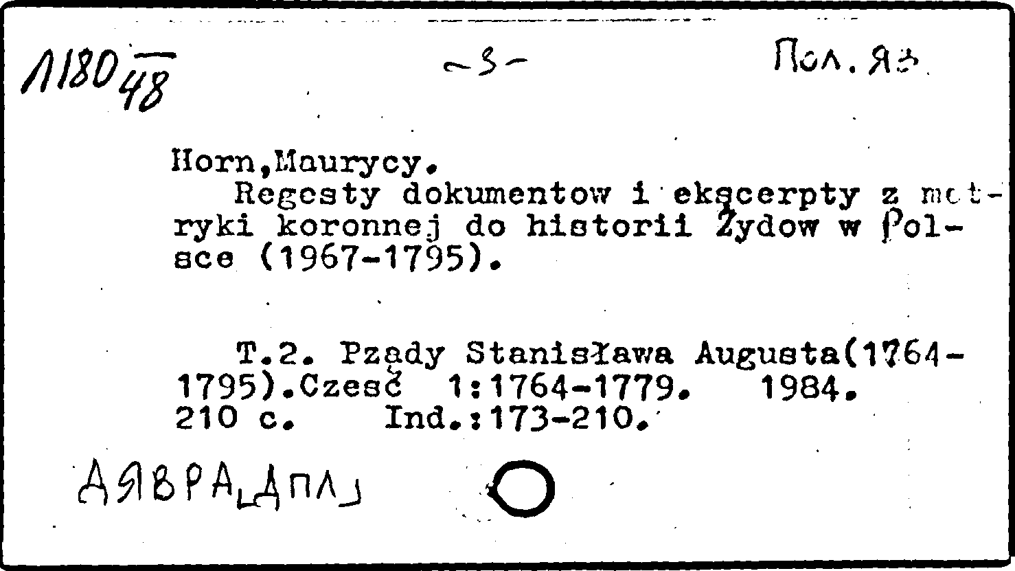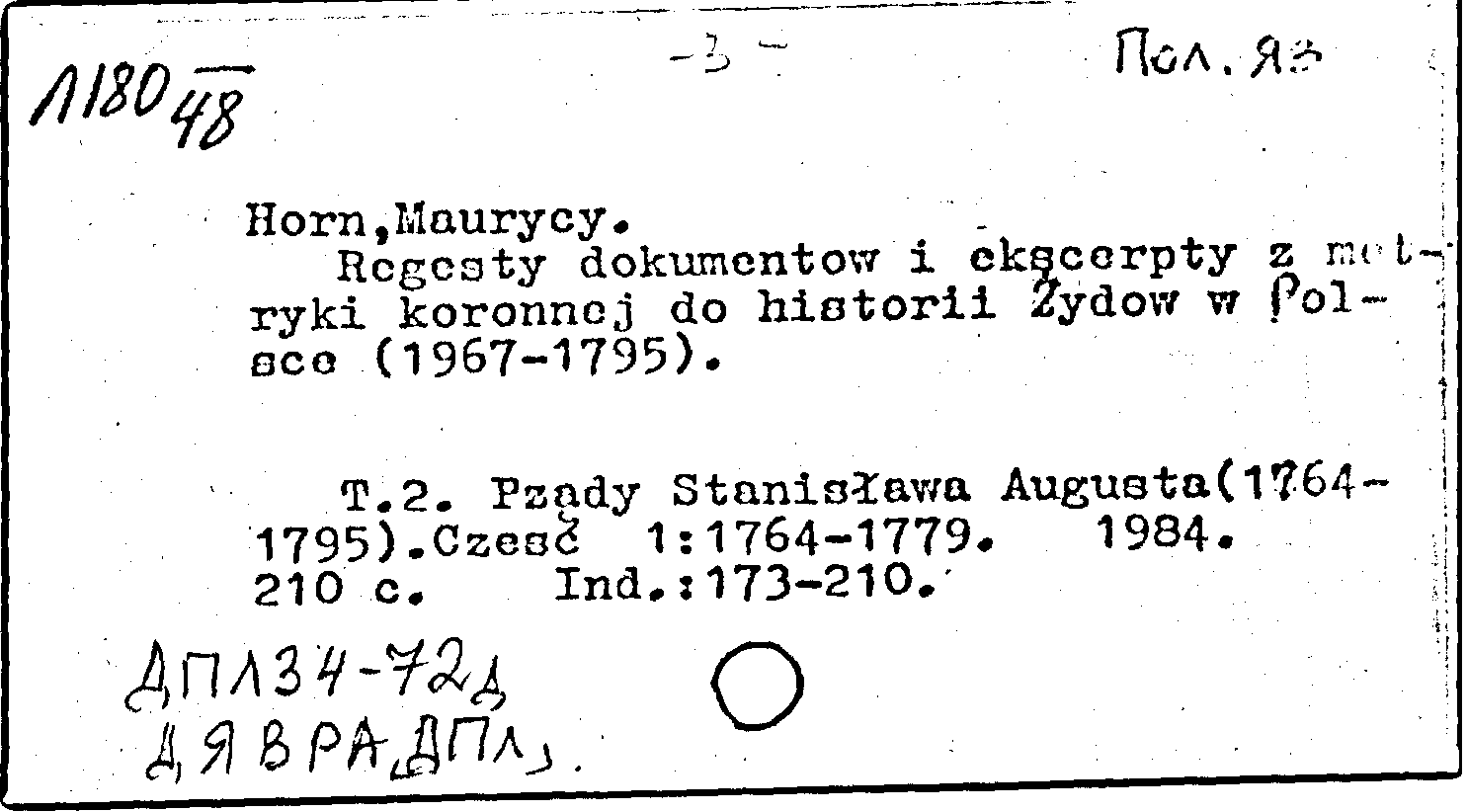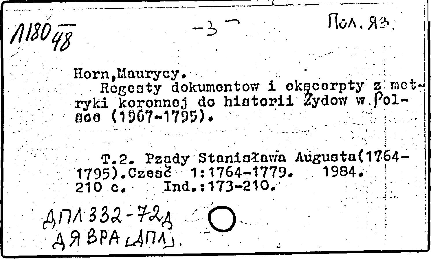 Книга: Regesty dokumentow i ekscerpty z metryki koronnej do historii Zydow w Polsce (1697-1795). T. 2: Pzady Stanislawa Augusta (1764-1795). Czesc 1. 1764-1779