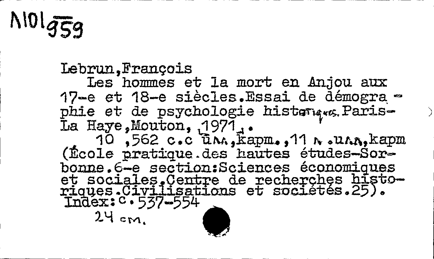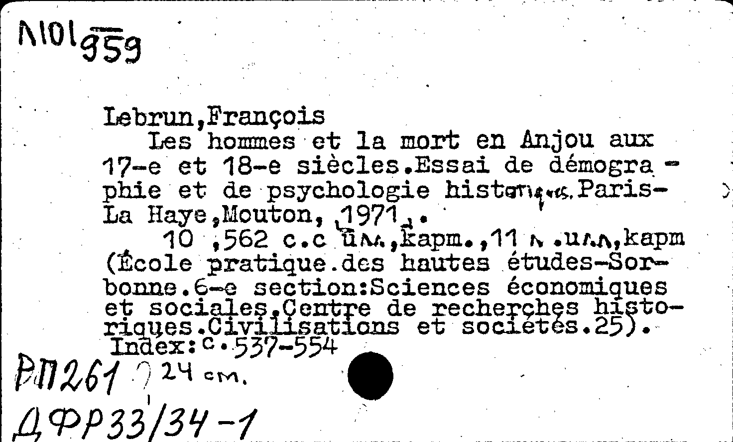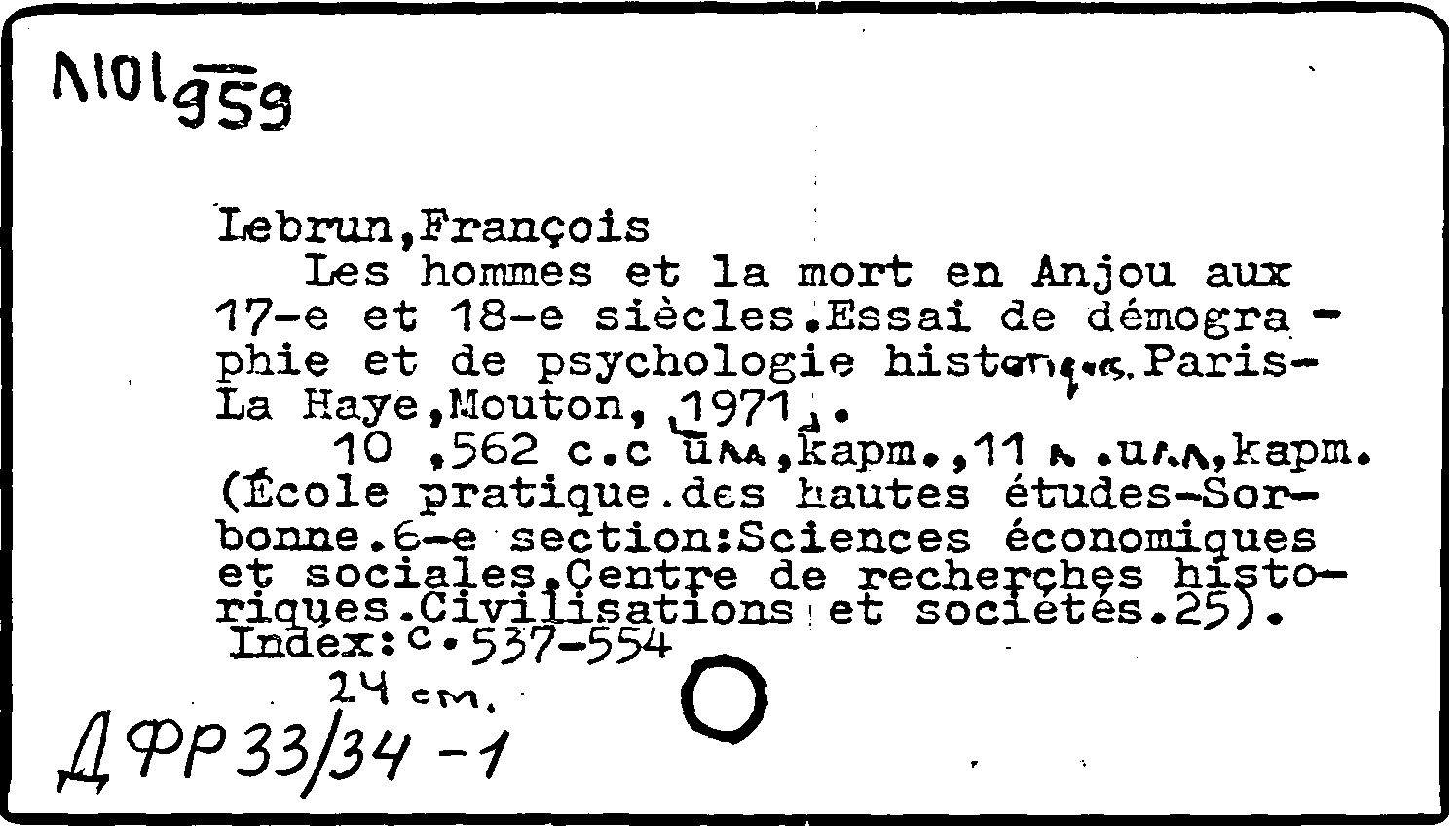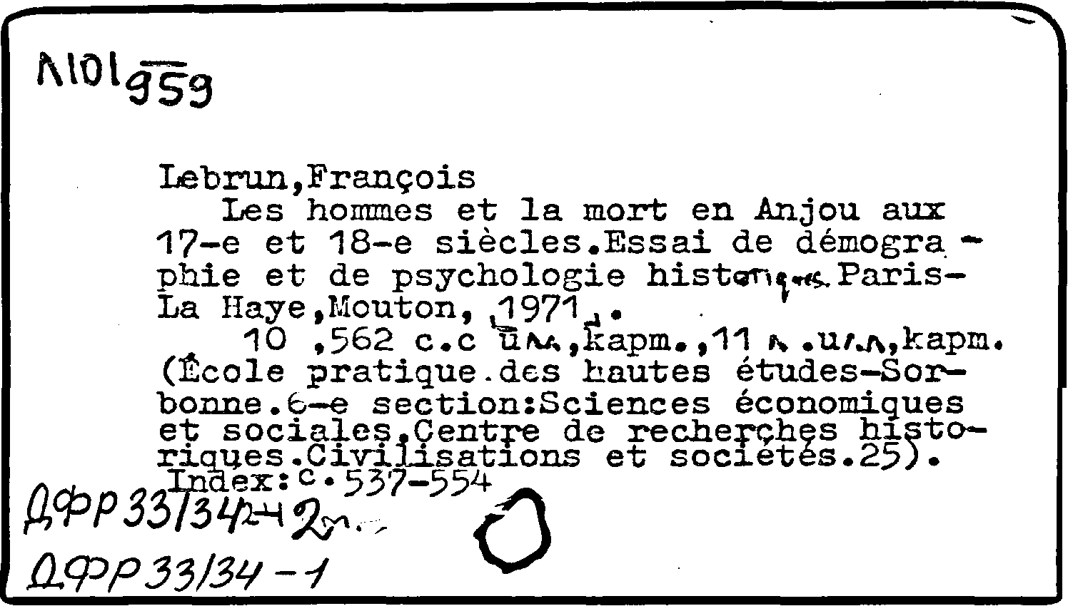 Книга: Les hommes et la mort en Anjou aux 17-e et 18-e siecles