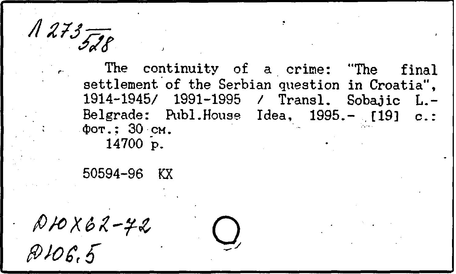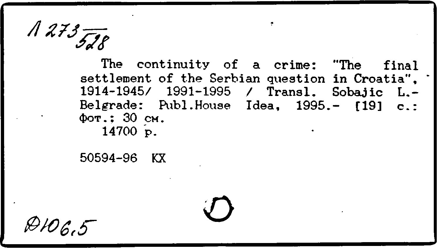 Фонд: КХ, Шифр: Л 273 /528, Инв.№: 0626521