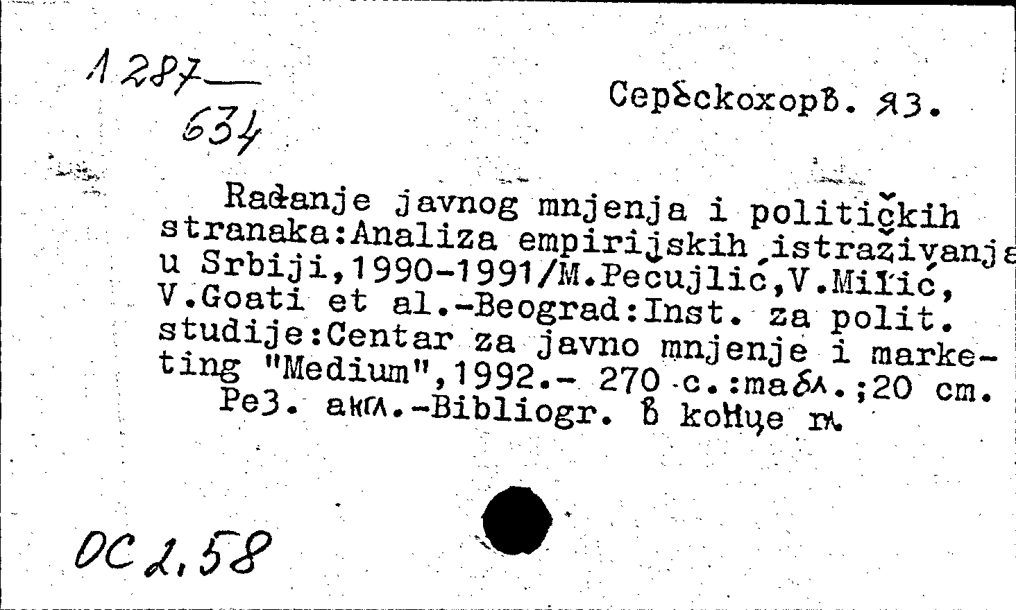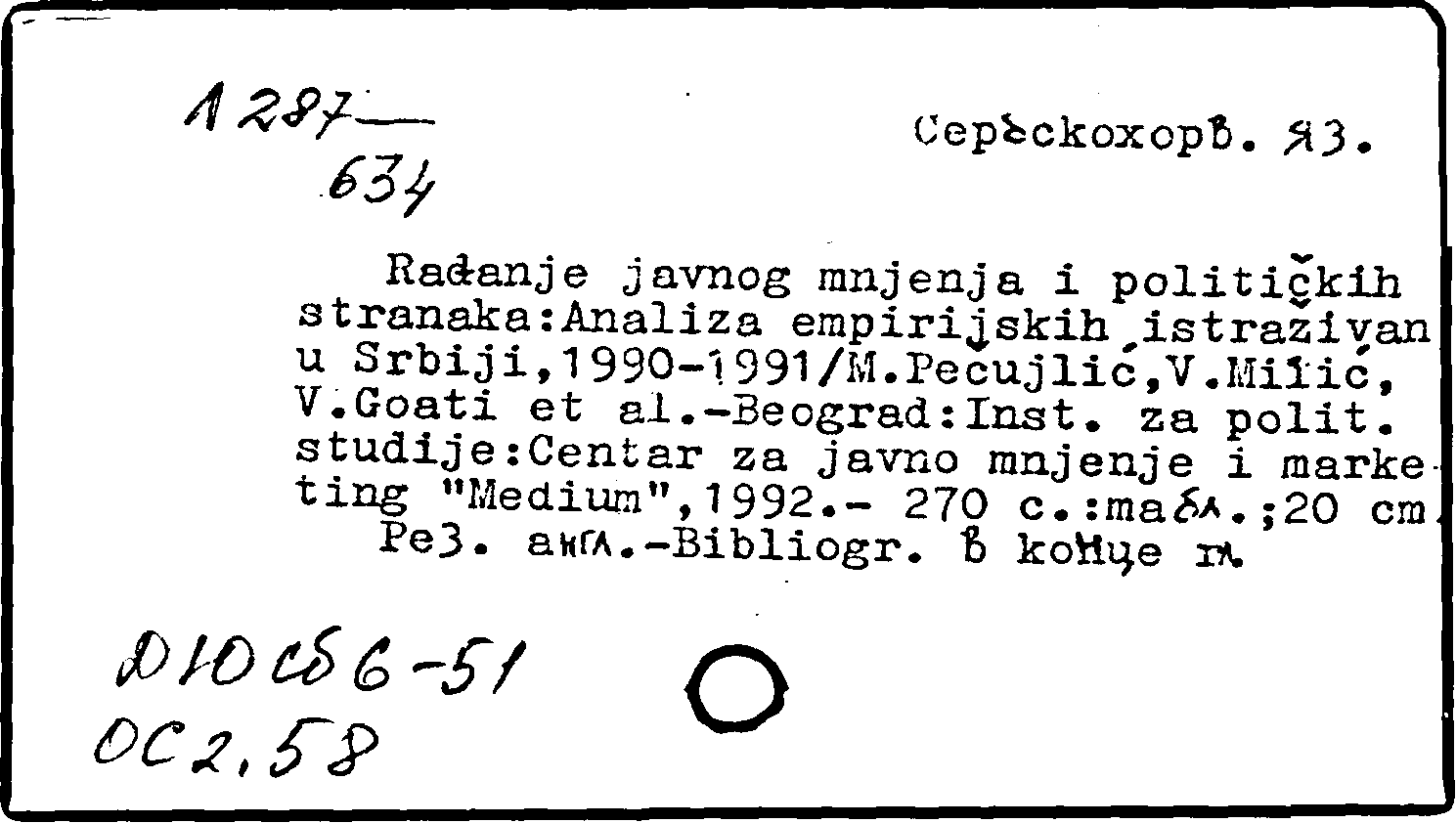 Inst. za polit. studije,Centar za javno mnjenje i marketing "Medium",
