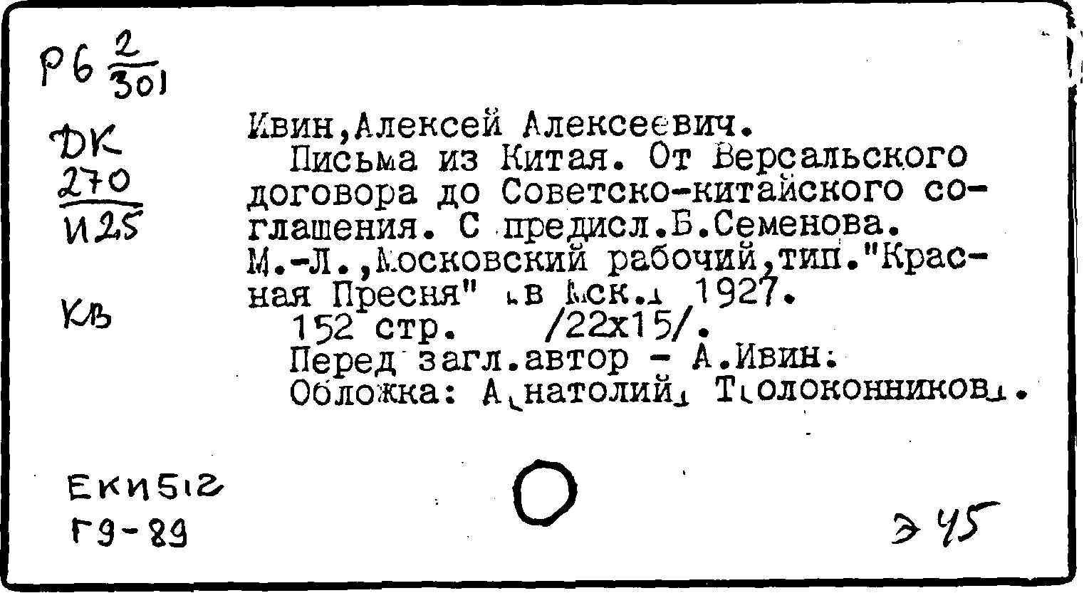 Фонд: КХ, Шифр: Р 6 2/301, Инв.№: 0657589