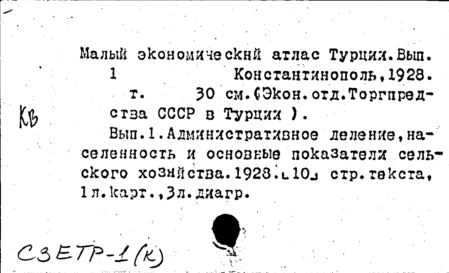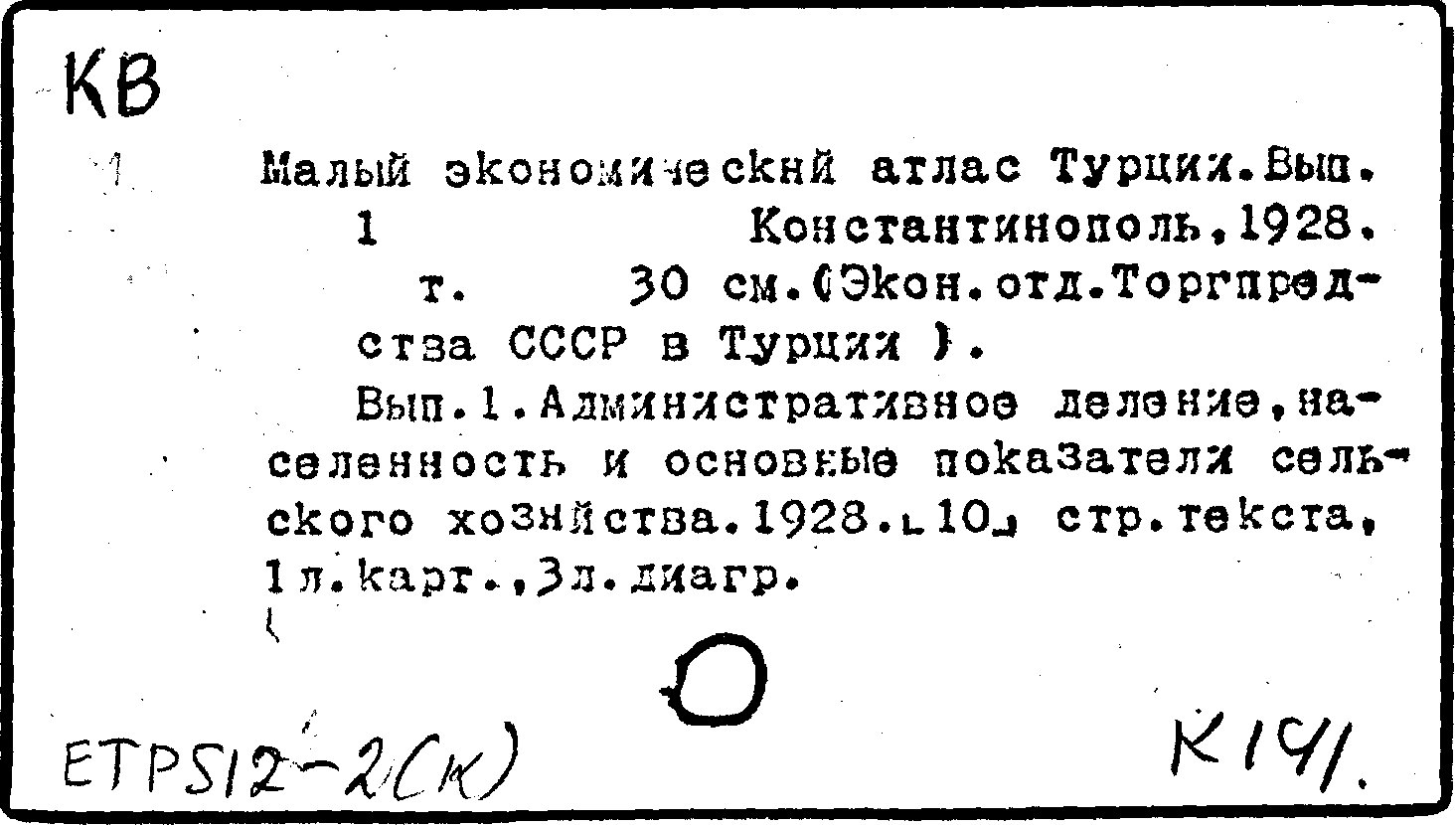 Малый экономический атлас Турции. Вып. 1: Административное деление, населенность и основные показатели сельского хозяйства