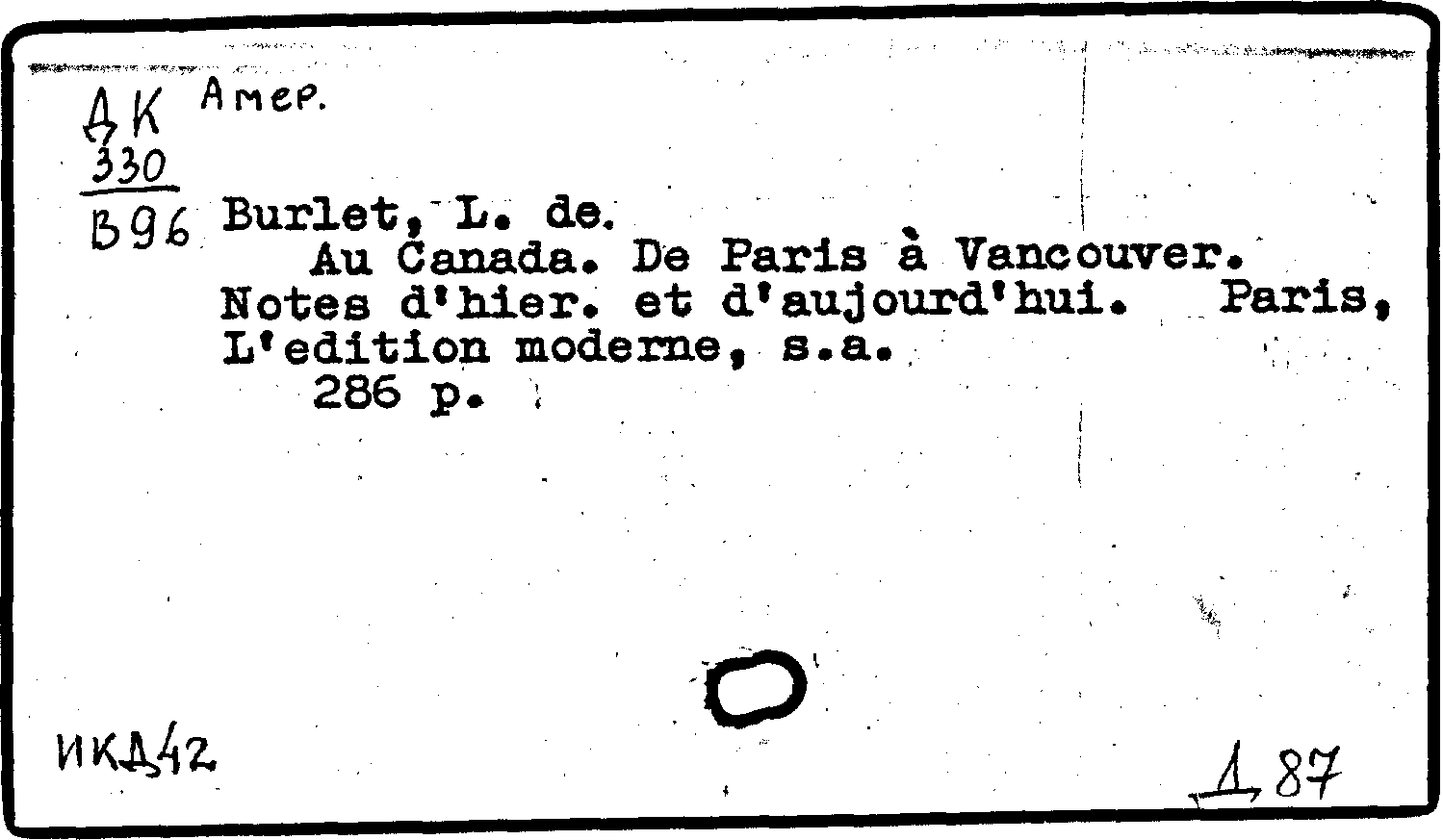 Фонд: КХ, Шифр: ДК 330 Амер./В96, Инв.№: 0691365