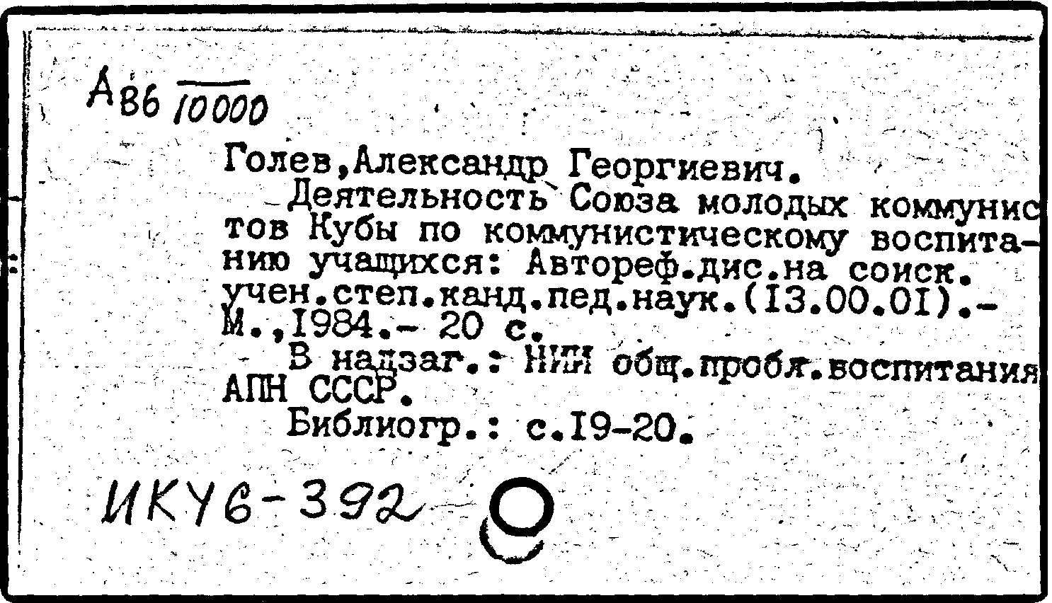 Фонд: КХ, Шифр: Ав 6 /10000, Инв.№: 0694882