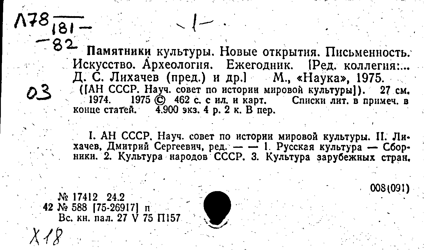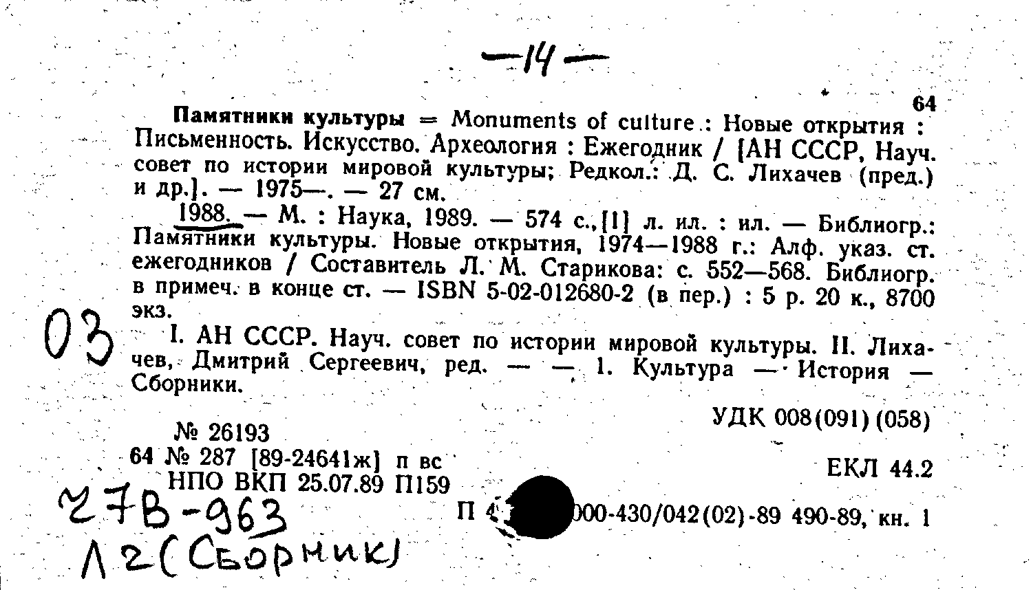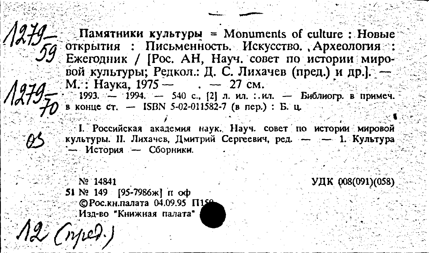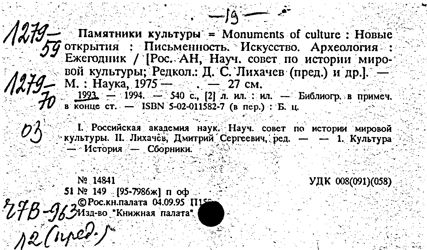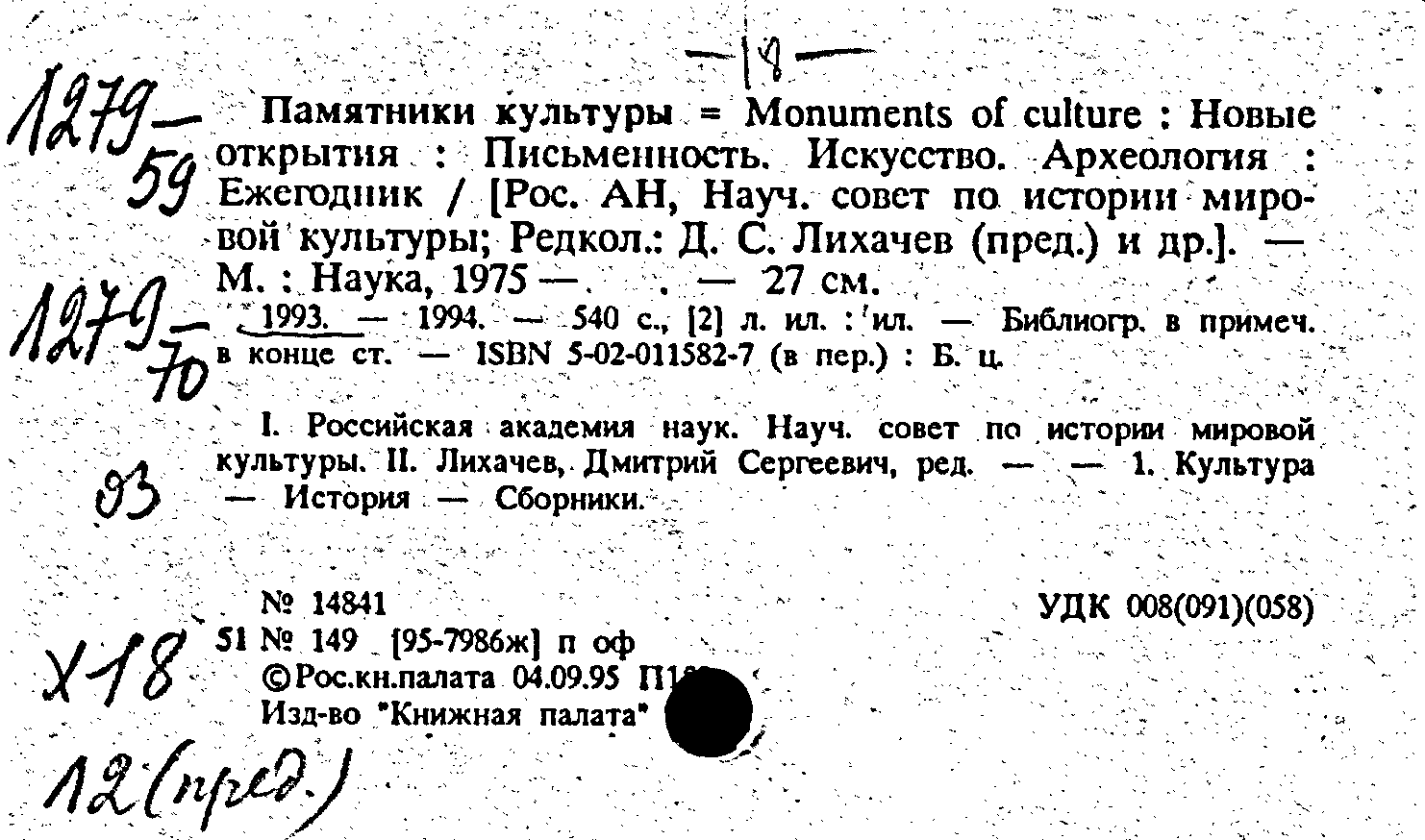 Памятники культуры. Новые открытия. Письменность. Искусство. Археология: ежегодник : [с 1974 по 1996]