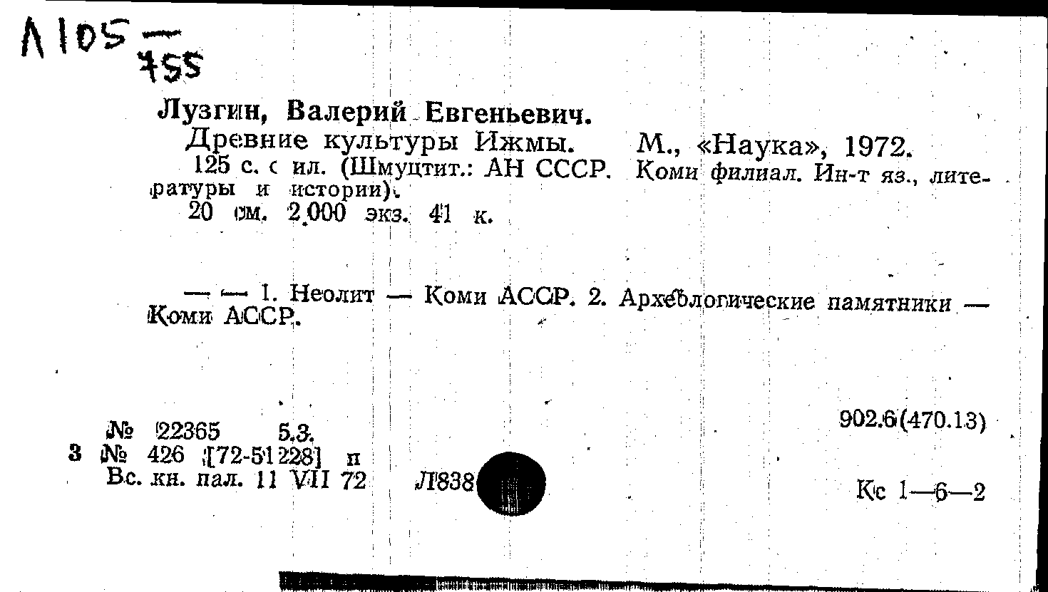 Фонд: КХ, Шифр: Л 105 /755, Инв.№: 0739162