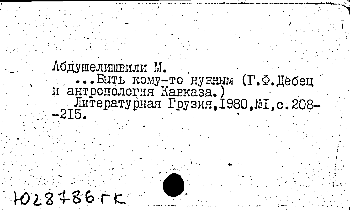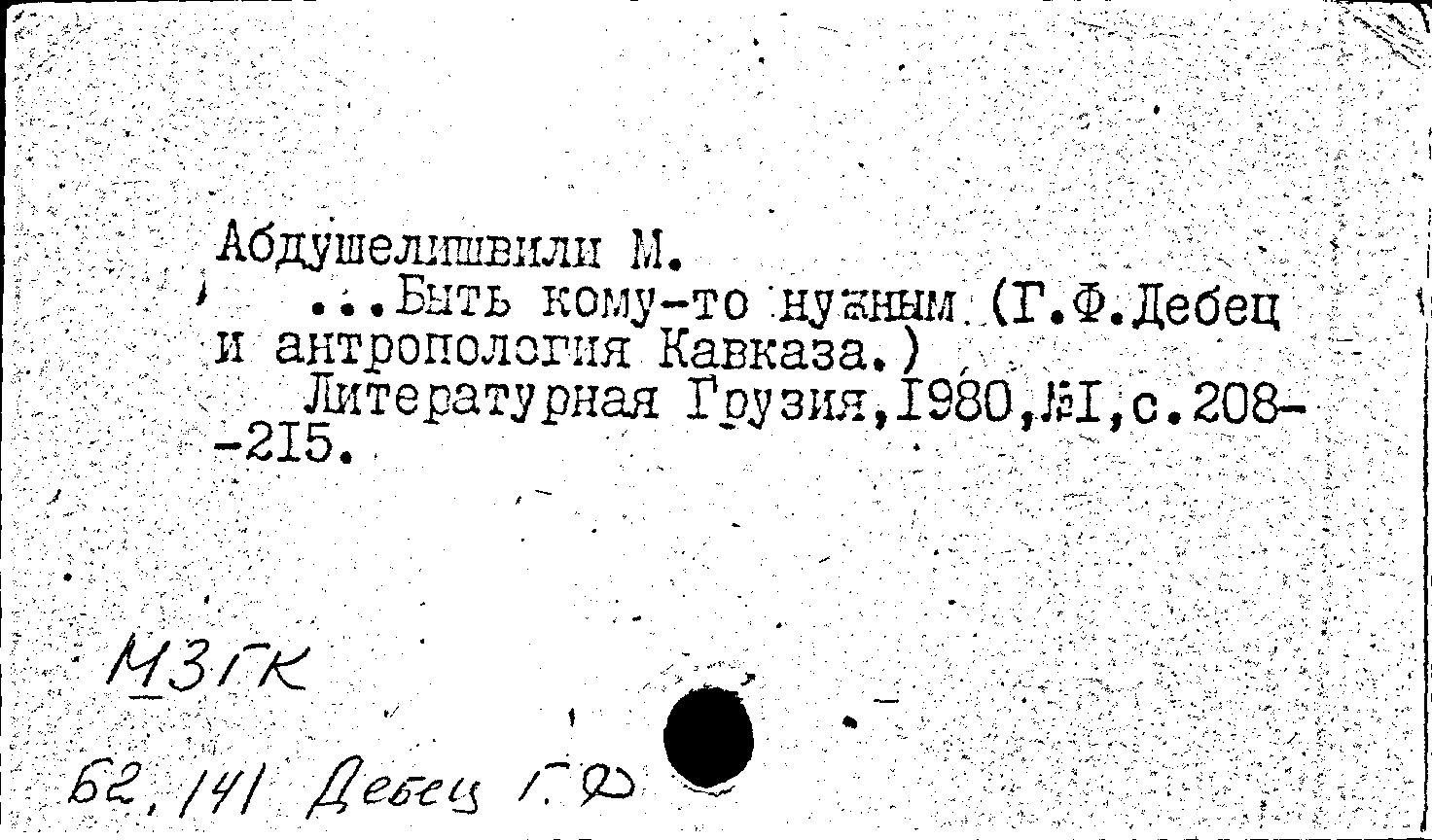 ... Быть кому-то нужным (Г. Ф. Дебец и антропология Кавказа)
