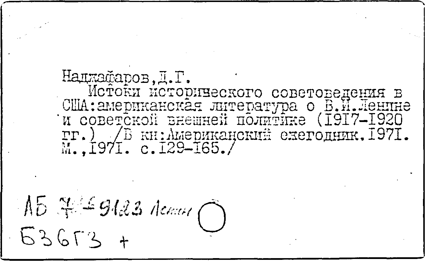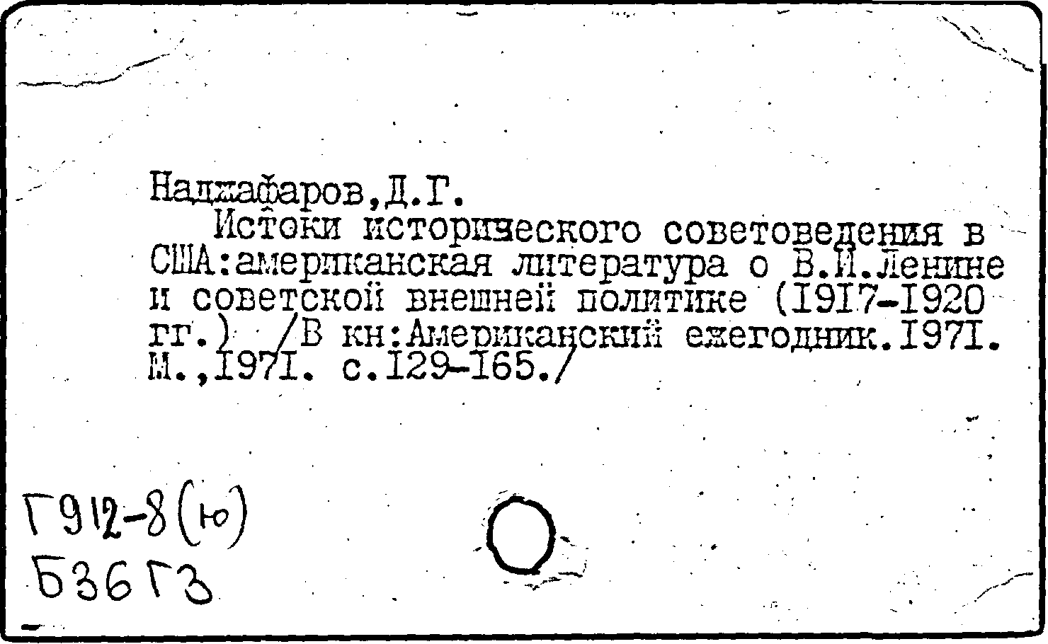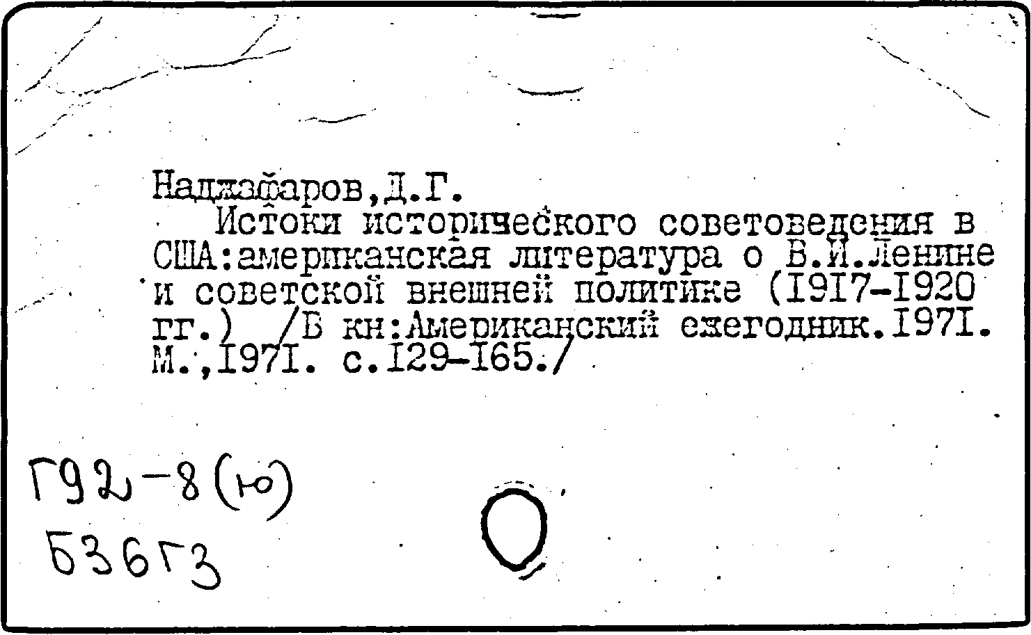 Книга (аналит. описание): Истоки исторического советоведения в США: американская литература о В. И. Ленине и советской внешней политике