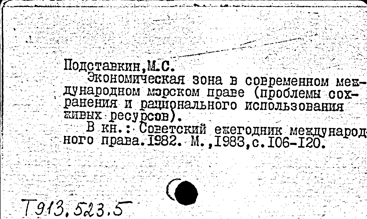 Книга (аналит. описание): Экономическая зона в современном международном морском праве (проблемы сохранения и рационального использования живых ресурсов)