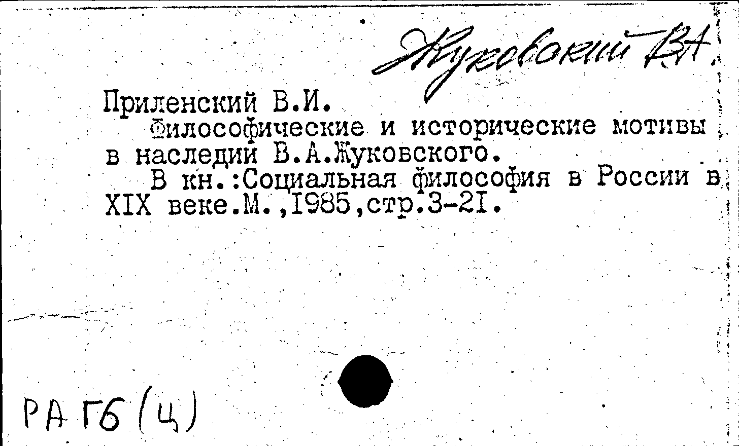 Книга (аналит. описание): Философические и исторические мотивы в наследии В. А. Жуковского