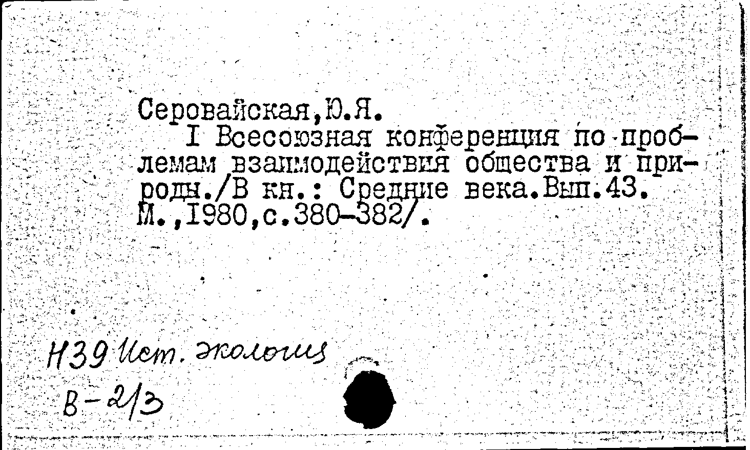 Книга (аналит. описание): I Всесоюзная конференция по проблемам взаимодействия общества и природы