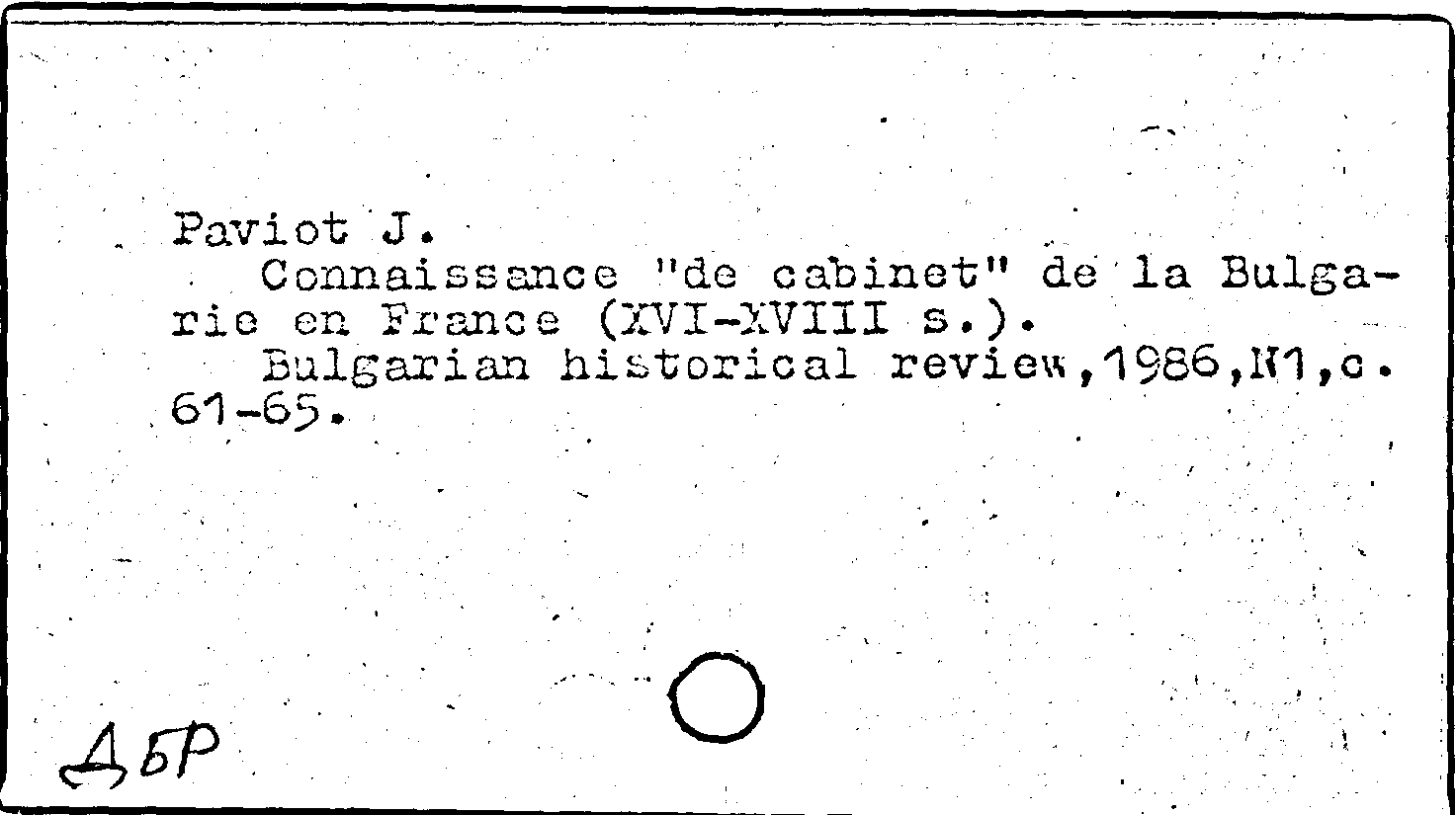 Книга (аналит. описание): Connaissance "de cabinet" de la Bulgarie en France (XVI-XVIII)