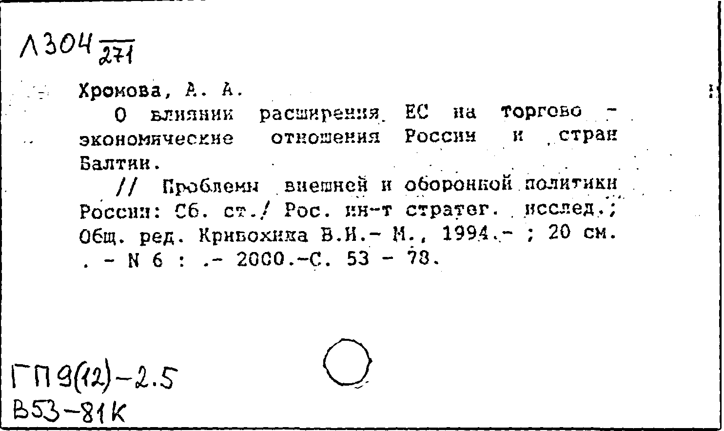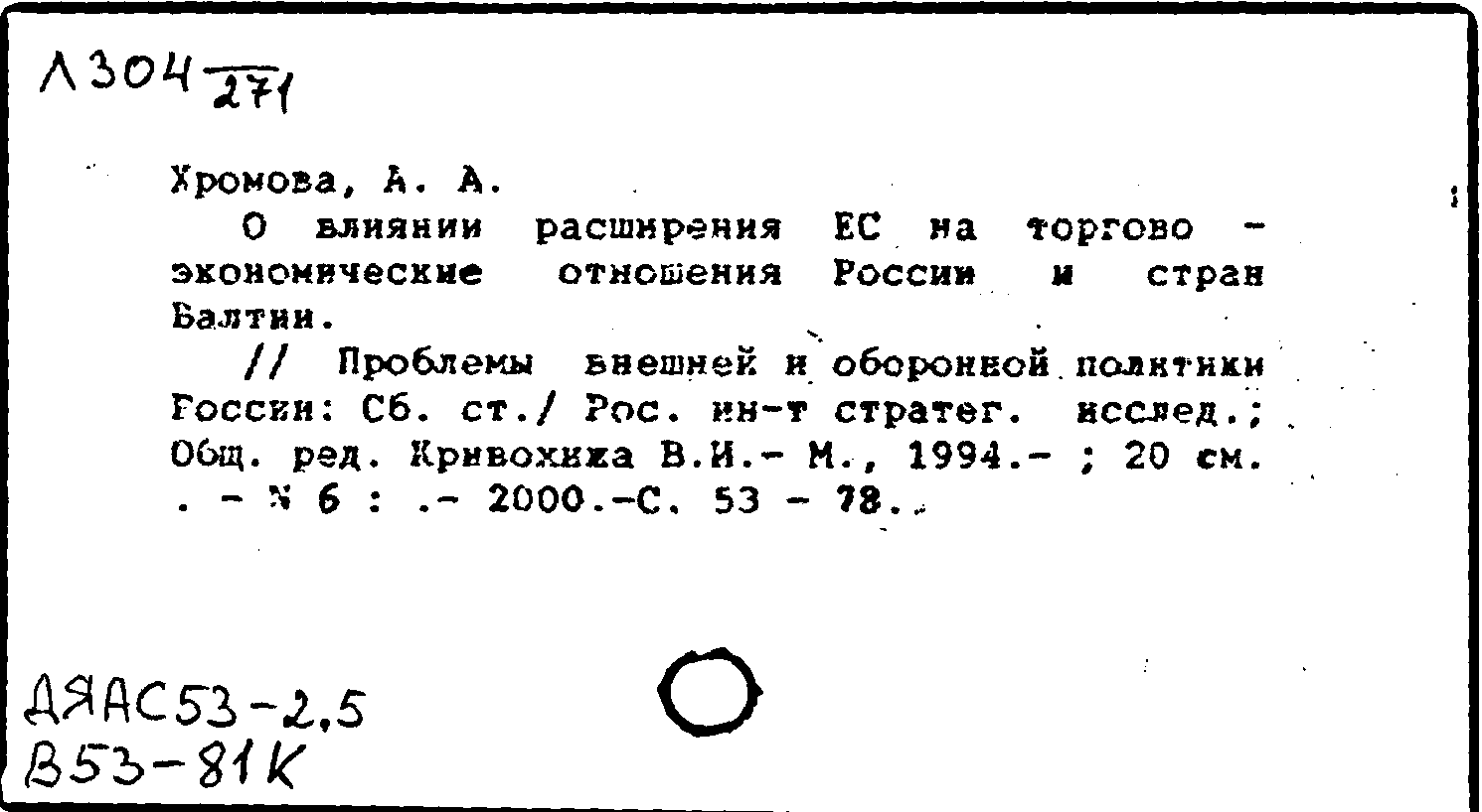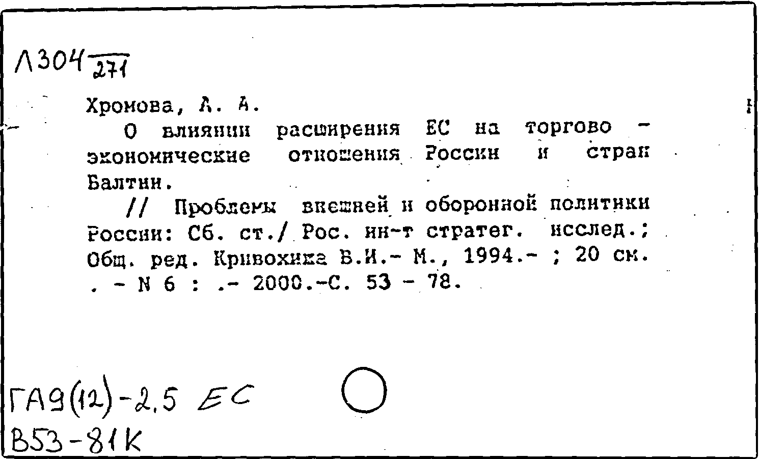 Книга (аналит. описание): О влиянии расширения ЕС на торгово-экономические отношения России и стран Балтии