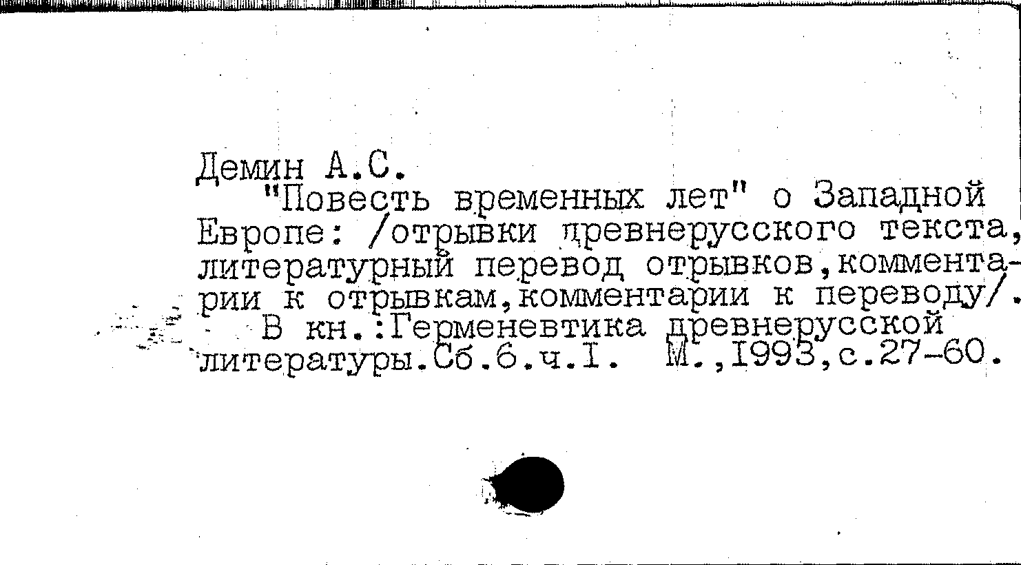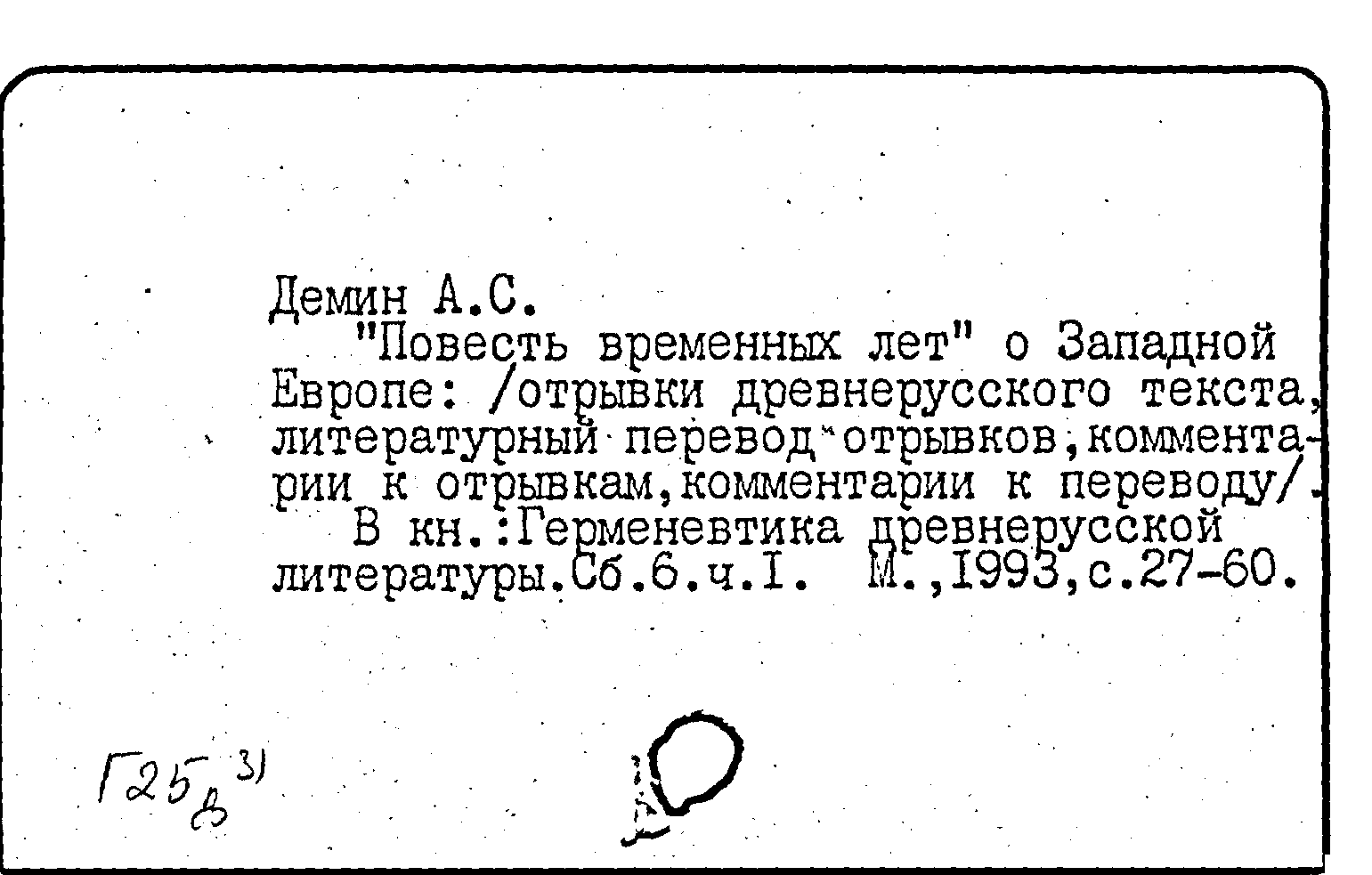 Книга (аналит. описание): "Повесть временных лет" о Западной Европе