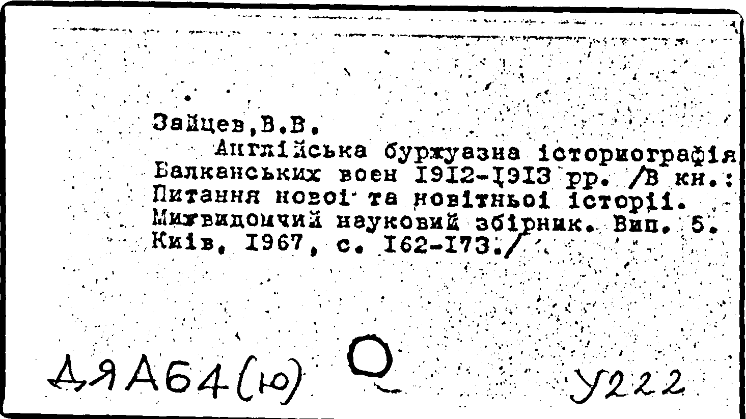 Книга (аналит. описание): Англiйська буржуазна iсторiографiя Балканських воен 1912-1913 рр.