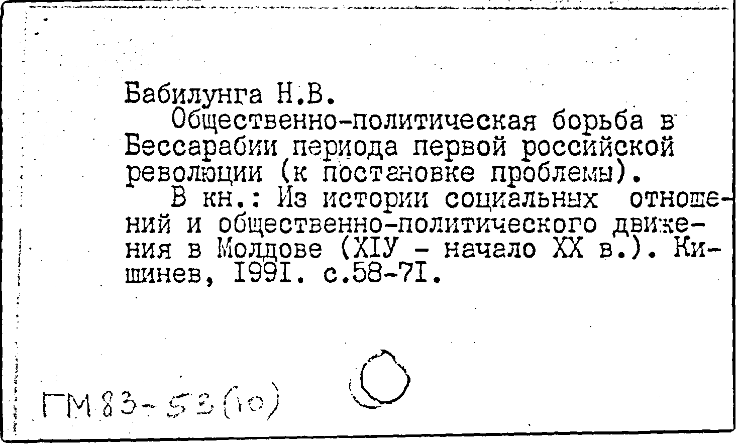 Книга (аналит. описание): Общественно-политическая борьба в Бессарабии периода первой российской революции (к постановке проблемы)