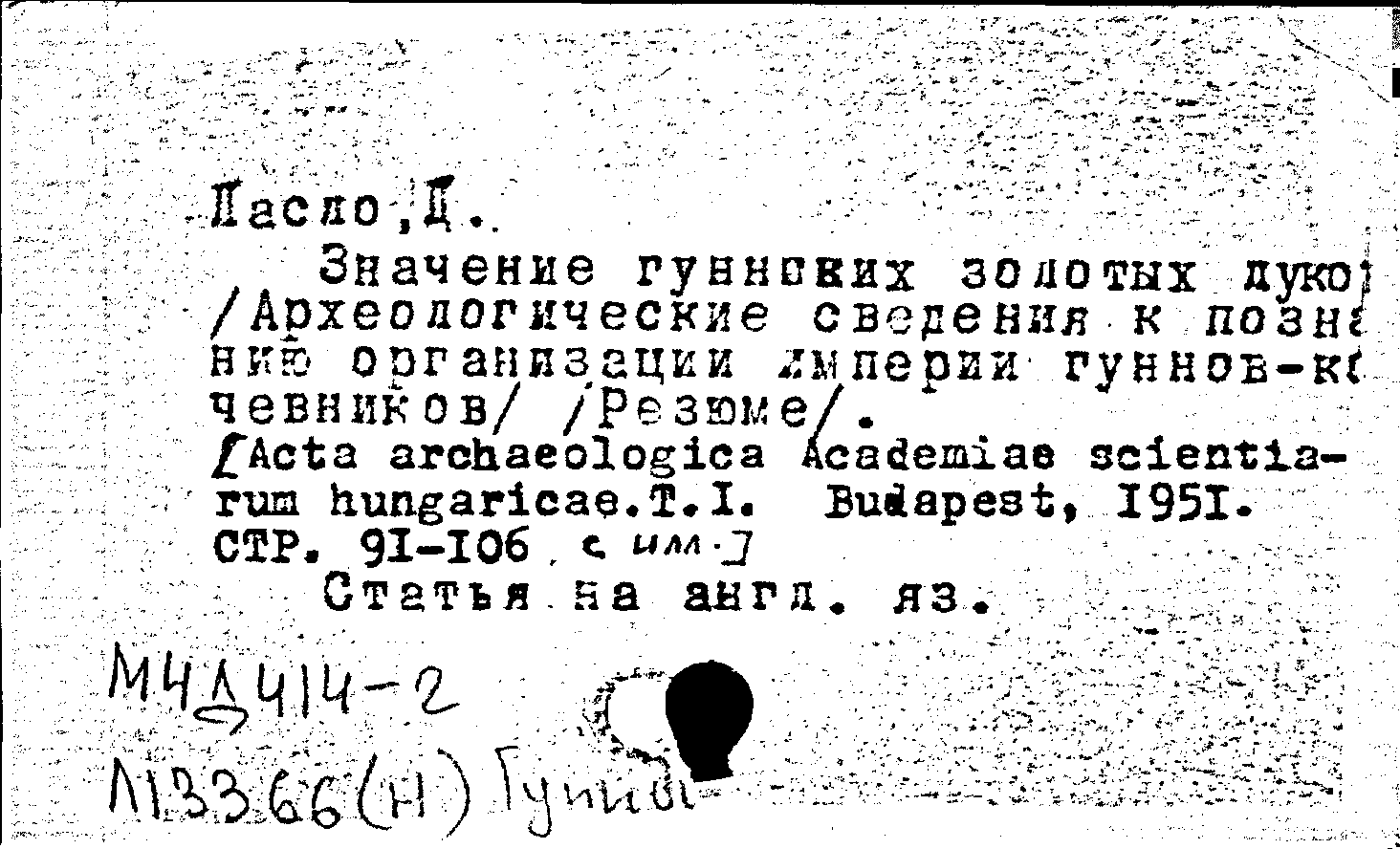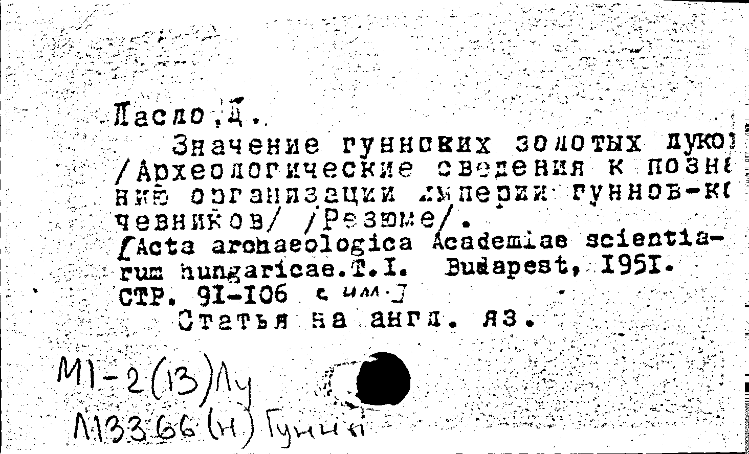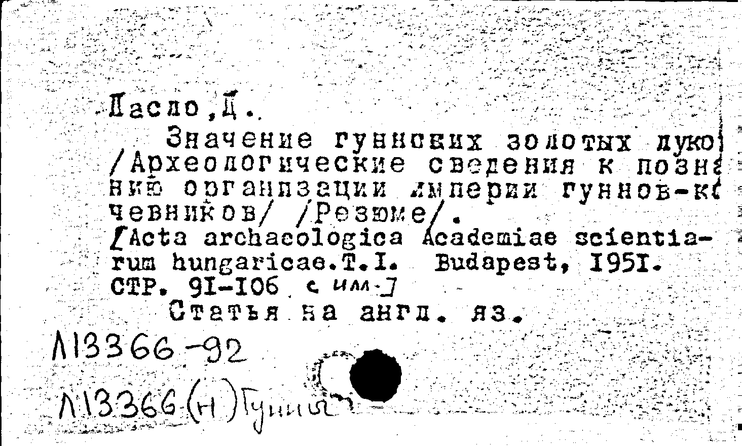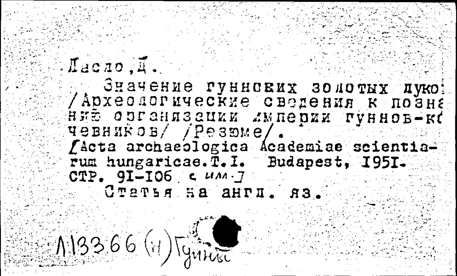 Книга (аналит. описание): Значение гуннских золотых луков (Археологические сведения к познанию организации империи гуннов-кочевников)